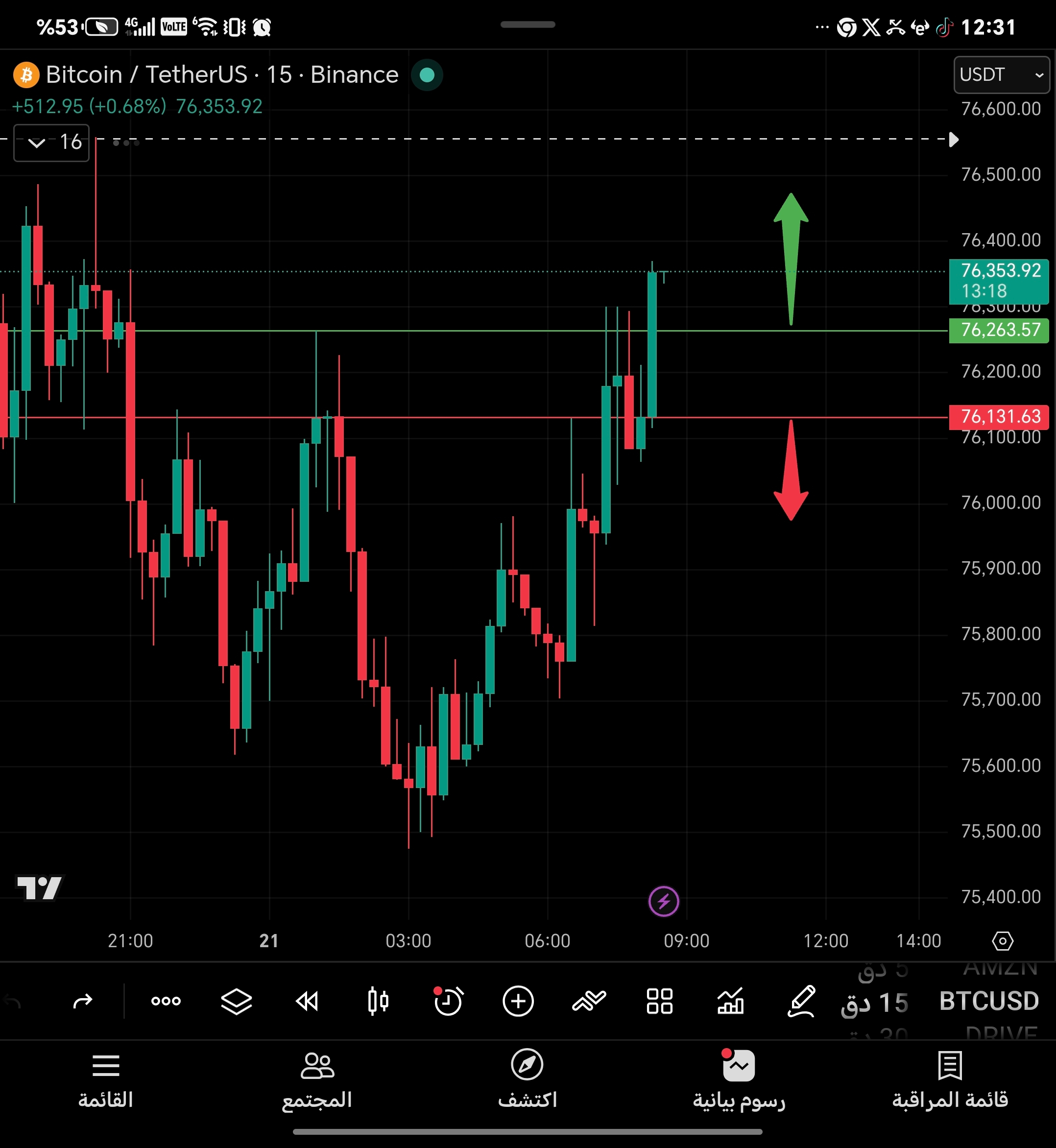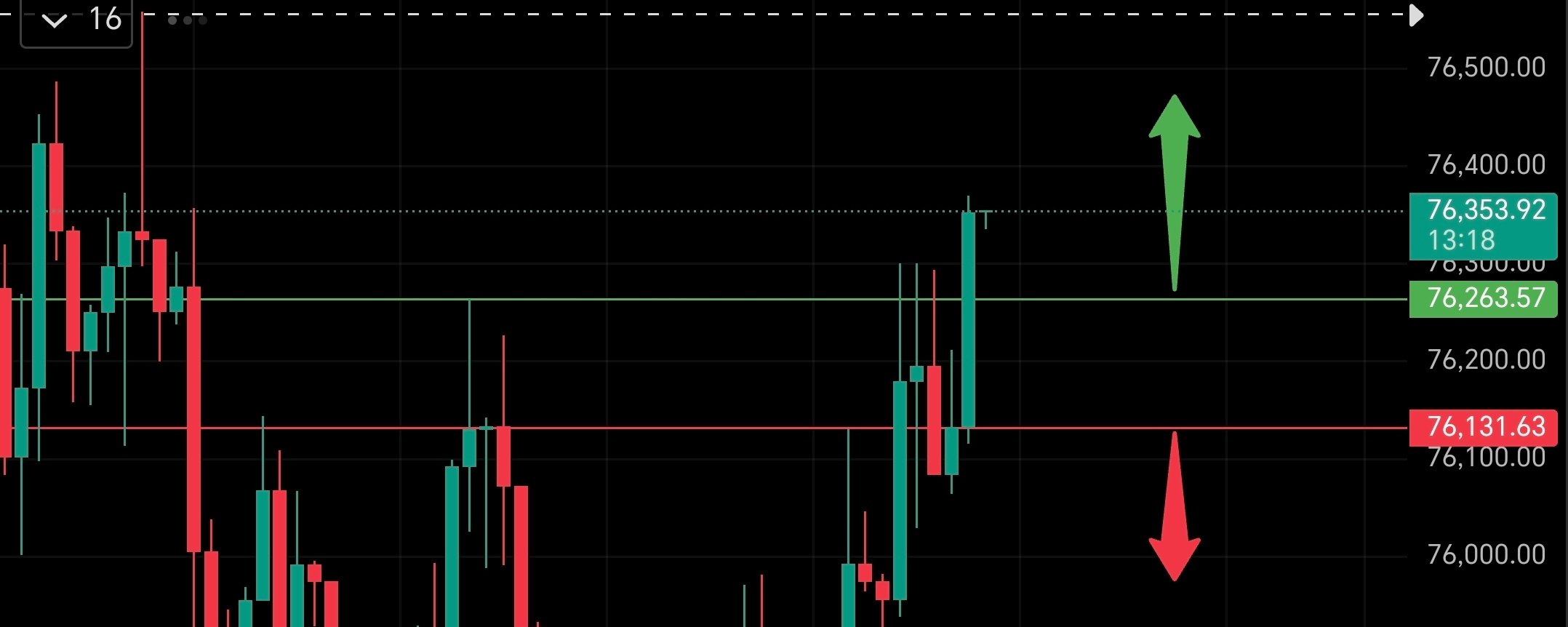 4. Price now at 76,340 - heading towards swing high ~76,500