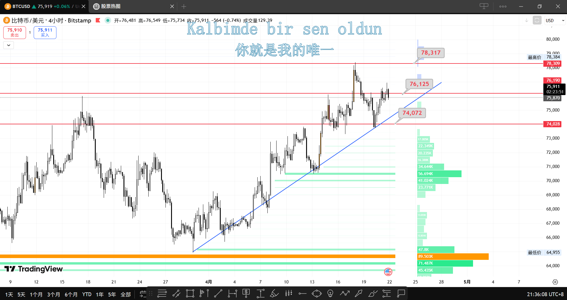 压力位:76000、78300