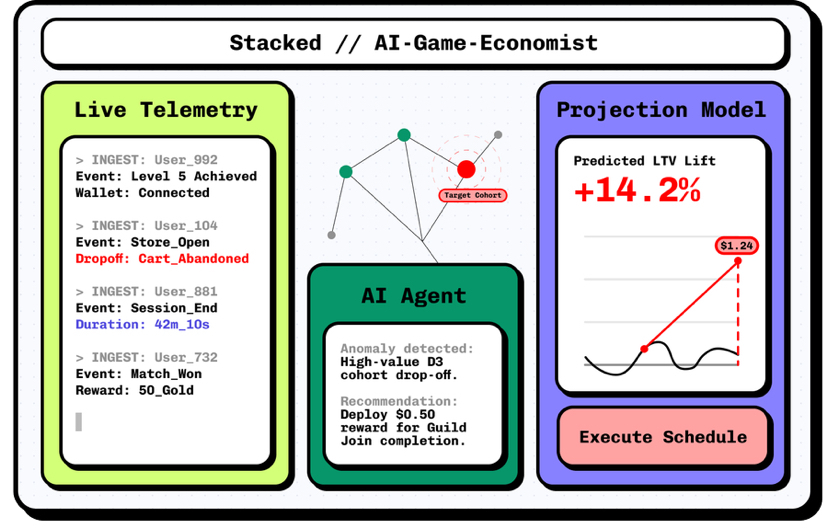 The AI economist here isn't just a decorative layer. It analyzes where the studio is losing money: at what stage retention drops, which actions don't lead to returns, where rewards fail to have an impact. Then come targeted incentives and a rapid testing cycle. A manageable link emerges: behavior → metric → revenue.
