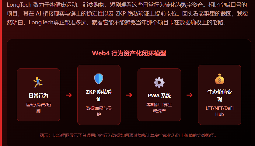 At the end of last year, in an old group in the crypto circle, someone posted a screenshot saying they had invested all their savings from the past six months into a "behavior mining" project. As a result, after two months, it got stuck on data rights confirmation, and in the end, they left in a disheartened manner. That message made me pay more attention to LongTech at that time because its approach is somewhat similar to that project, but it has done its homework in bridging AI with reality and the blockchain part ahead of time. The current main slogan on the official website reads, "The Future is Here, Build Your Web4 Value World." The core concept is to transform daily activities like health exercise, shopping, and watching short dramas into digital assets. Personally, I think this adds a layer of practicality compared to many Web3 projects that only shout slogans.