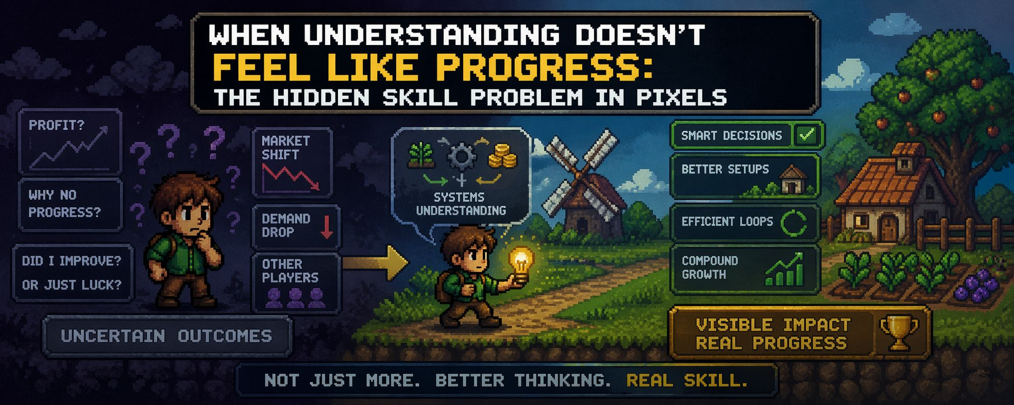 If Pixels finds a way to make system understanding more visible—if it can show players that their decisions are shaping outcomes in ways that are hard to confuse with luck or capital—it could land somewhere interesting. Not a traditional skill loop, but something quieter. A form of progression where players feel smarter over time, not just richer.