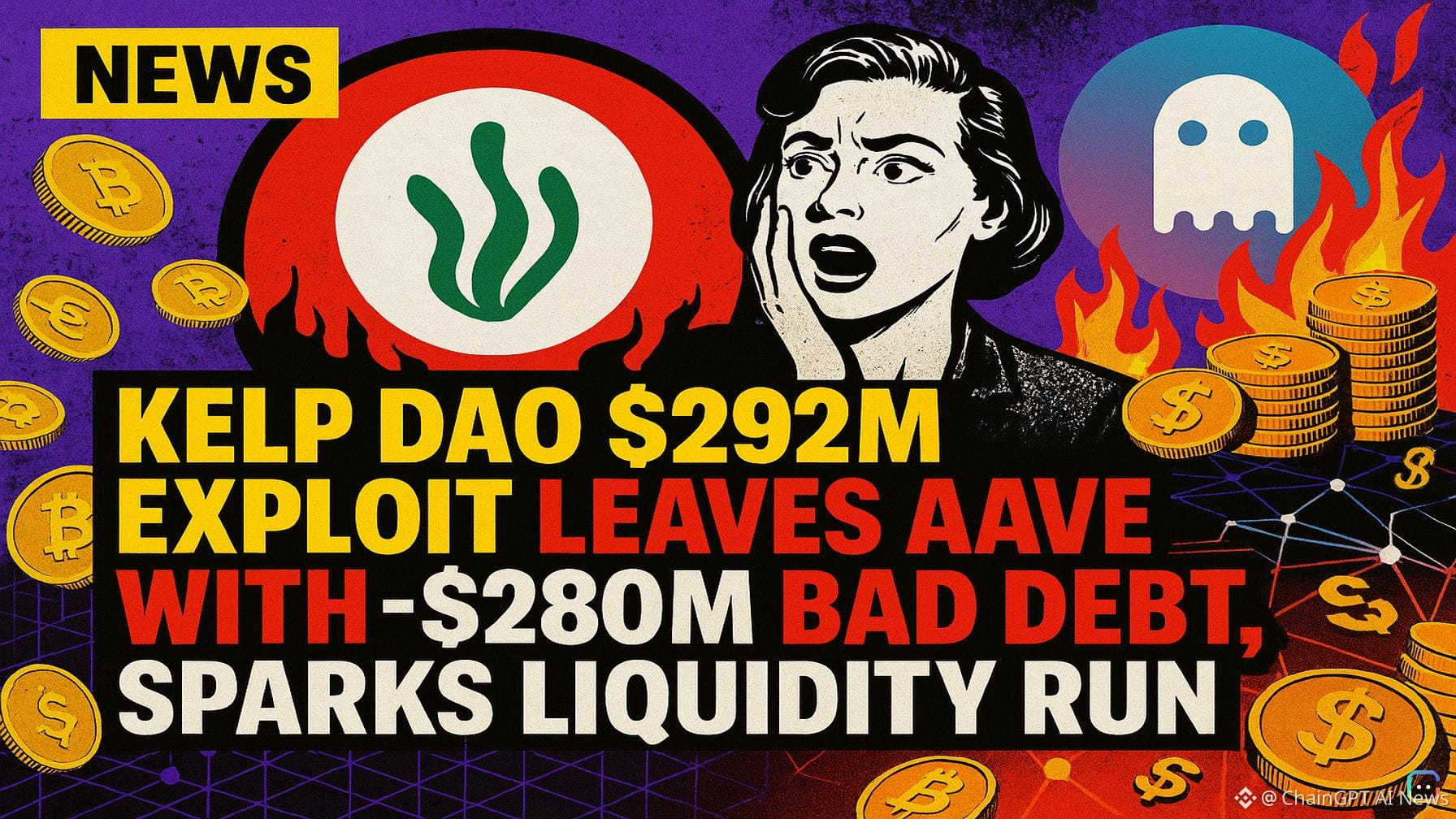 A $292 million exploit tied to restaking protocol Kelp DAO has sent shockwaves through DeFi — and Aave has emerged as one of the hardest-hit casualties. What happened - Over the weekend an attacker drained roughly 116,500 rsETH (about $292 million) from Kelp DAO’s LayerZero bridge. - The attacker then supplied the stolen rsETH as collateral on Aave V3 and borrowed roughly $236 million in WETH. - Because the rsETH subsequently became effectively unbacked, those collateral positions are not liquidatable. The result: Aave is now saddled with roughly $280 million in bad debt it cannot directly recover. Immediate effects on Aave and users - Panic was fast. Aave’s ETH pool hit ~100% utilization, leaving the protocol with almost no ETH available for withdrawals and creating practical liquidity limits for users wanting to exit. - Crypto portfolio manager Pratik Kala summed up the reaction: it wasn’t that Aave caused the losses, but that it was carrying a gap it did not originate — triggering “withdraw first, ask questions later” behavior akin to a bank run. - Since the incident was disclosed on Saturday, Aave has recorded about $9 billion in net outflows and its TVL has plunged by more than a third to roughly $17.5 billion. Broader DeFi fallout - DeFi as a whole felt the pain: DeFiLlama data show around $13 billion left lending protocols within 48 hours of the hack. - Market sentiment followed. AAVE’s price slumped about 26% from a one-month high of $118 to roughly $88, and remains roughly 86% below its all-time high near $661 (CoinGecko). Protocol response - To limit contagion, Aave froze rsETH markets on the platform. On Sunday the team said its analysis indicates rsETH trading on Ethereum remains fully backed, but it maintained restrictions as a precaution. Why this matters - The incident highlights the systemic risks introduced when liquid staking derivatives and cross-chain bridges are used as collateral across lending markets. Unbacked staking assets can propagate a single exploit into large-scale insolvency and liquidity stress across unrelated platforms. - Watch for further governance and technical responses from Aave, Kelp DAO, and LayerZero, and for any recovery or socialized-loss proposals that could affect lenders and depositors. Takeaway The Kelp DAO exploit shows how quickly restaking and bridge vulnerabilities can cascade through DeFi. Even blue-chip protocols like Aave can face deep liquidity and solvency challenges when borrowed funds are backed by suddenly worthless tokens — and the market reaction can be swift and severe. Read more AI-generated news on: undefined/news