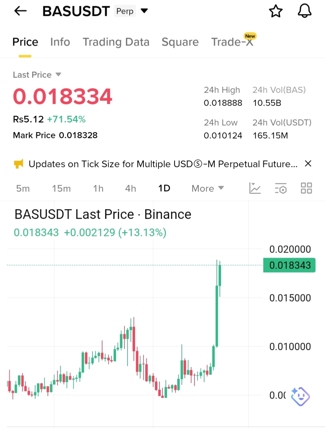 $BAS is currently experiencing a strong bullish surge driven primarily by a sharp increase in trading volume and momentum-based buying. With over 165M USDT in 24-hour volume and a significant price jump of more than 70%, this move reflects aggressive participation from both retail traders and large players (whales). Technically, the price has broken out of a prolonged consolidation range around the 0.010–0.012 zone, which acted as a key resistance area for weeks. Once this level was cleared, it triggered a cascade of buy orders and likely forced short sellers in the futures market to exit their positions, creating a short squeeze. This type of price action often leads to rapid vertical movements, as seen on the chart, where large green candles are supported by high volume spikes. Additionally, increased visibility on Binance (through trending sections, updates, or community attention) can amplify demand, pulling in more traders and fueling the rally further.