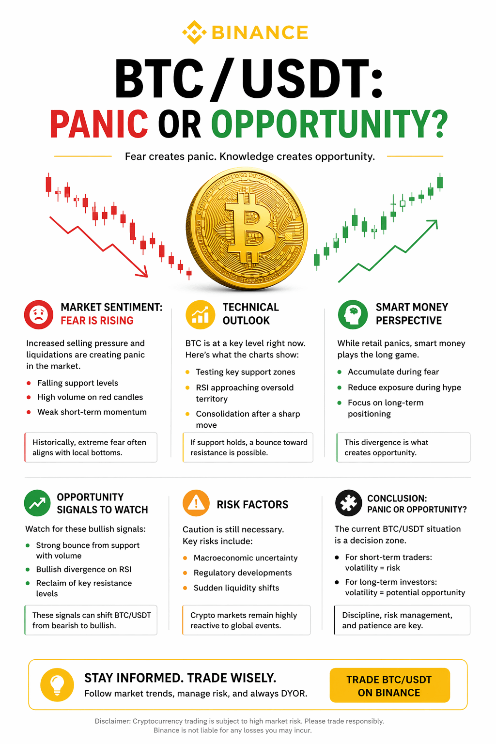 The Bitcoin (BTC) market is once again at a critical crossroads. With rising volatility in the BTC/USDT trading pair on Binance, traders are asking the same question: Is this a moment of panic—or a hidden opportunity?