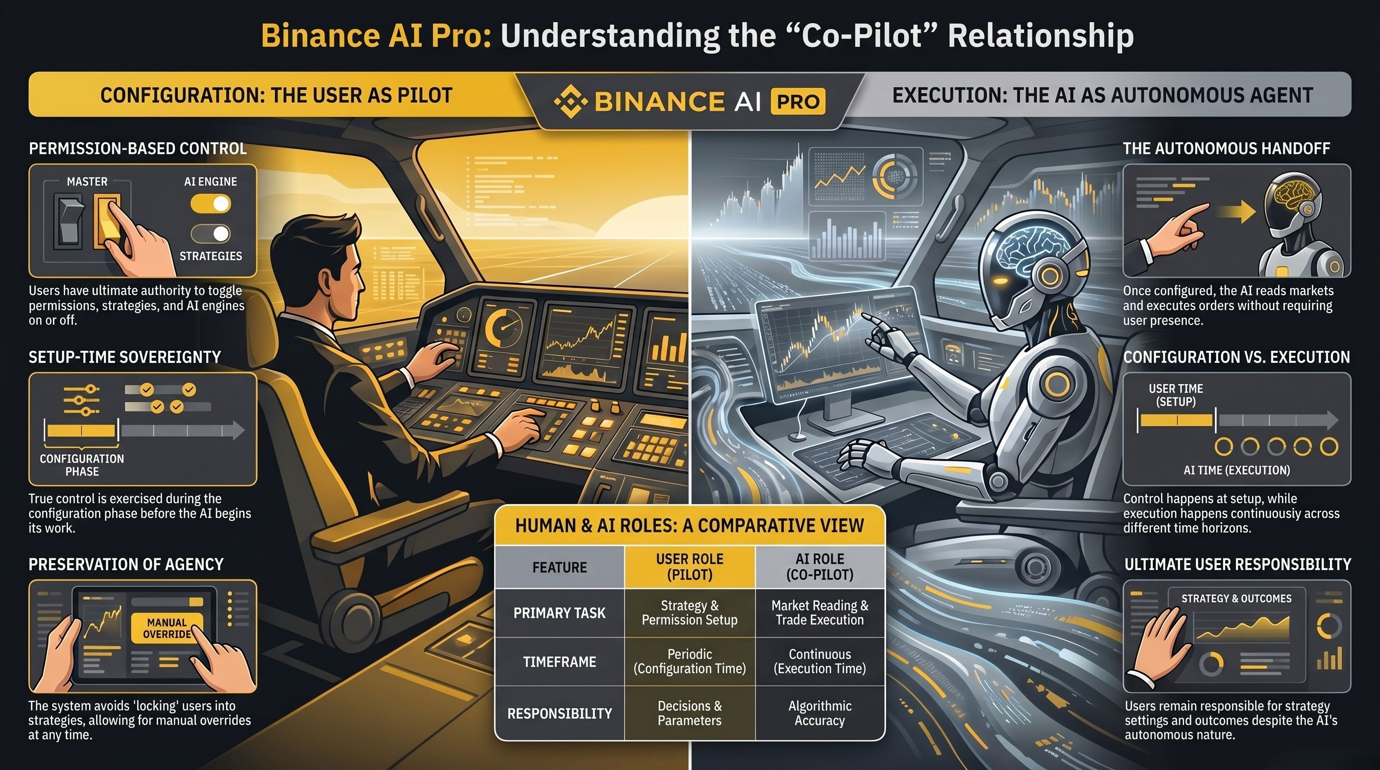 Because the product they describe is real. Binance AI Pro allows users to set permissions, configure strategies, select AI tools, and toggle access on and off at any time. The control mechanisms are real, and the decentralized model is transparent. Users who want to limit what the AI can do have real tools to do so.
