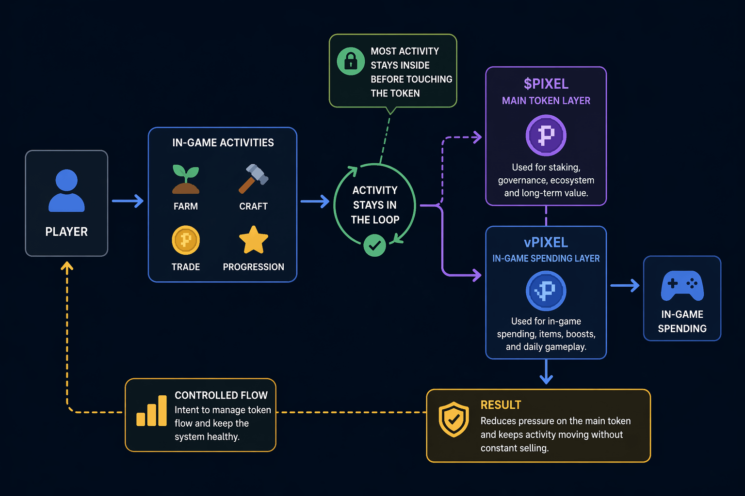 That is where $PIXEL starts to feel different. It is present in the system. But it is not forced into every action. A lot of activity stays inside the loop before it ever touches the token. There is also a second layer with vPIXEL which is used for spending inside the game. That split matters. It reduces pressure on the main token and keeps activity moving without constant selling. It is not perfect. But it shows intent to control flow instead of letting it break too easily.