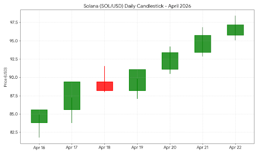 SOL/USD Daily Candlestick Chart (April 16 – April 22, 2026)