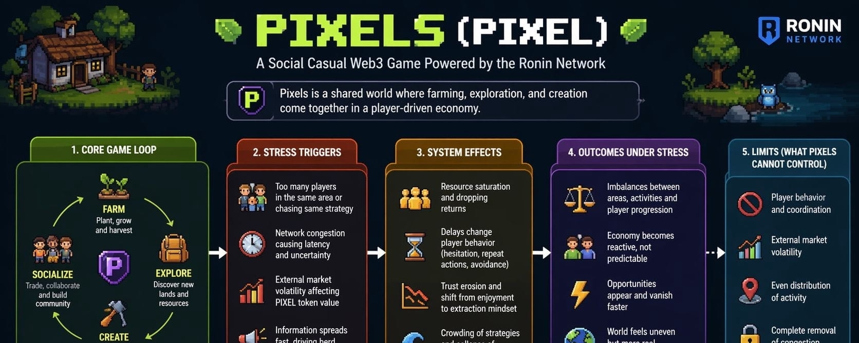 Ultimately, PIXEL should not be viewed solely as a game or a tokenized ecosystem. It represents an attempt to build a controlled, behavior-aware digital economy where participation, reputation, and value are tightly interlinked. This is an ambitious direction, but also a demanding one. Systems like this do not fail simply when users leave; they fail when incentives drift out of alignment with human behavior. Turning a game into a durable coordination network is a far more complex challenge than capturing initial attention and that will be the true measure of its success.