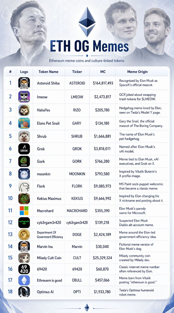 由SpaceX的小行星触发,并延伸到尼基塔(非官方)的X吉祥物福尔克,ETH OG表情符号目前正在被强调。我们策划了一系列与@elonmusk、@GCRClassic和@VitalikButerin相关的杰出ETH OG表情包。