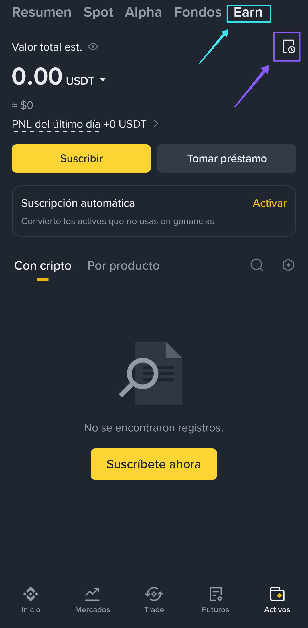 1- Go to your EARN wallet (Blue arrow)