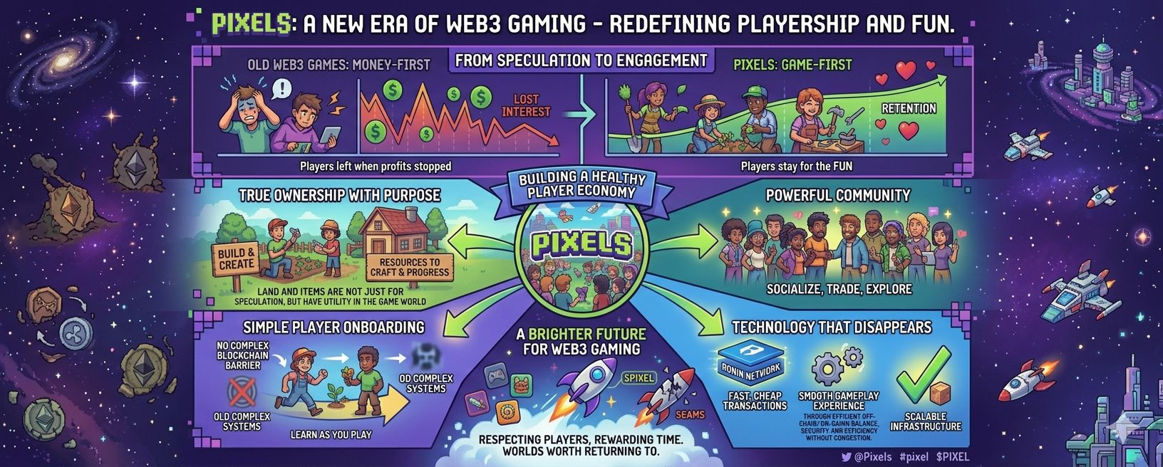 Pixels is different. It does not try to change the way we play games with promises. Instead it focuses on something important: making the game fun. That sounds easy. It is exactly what many Web3 projects missed. Pixels understands that if the game is not fun then nobody will want to play it. If players are only playing to make money they will leave soon as the money stops coming in.. If they are playing because they enjoy the game then they will keep coming back.