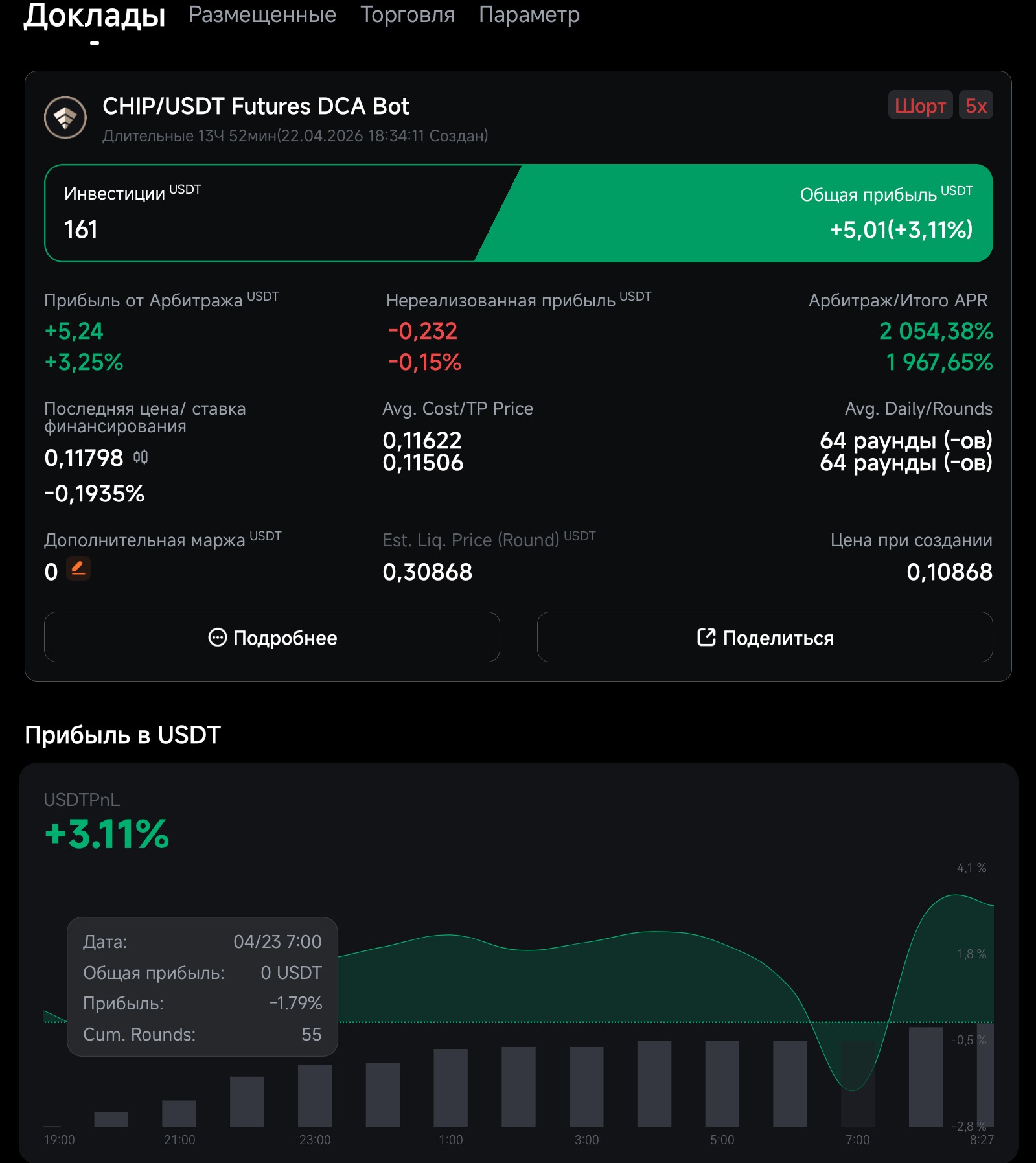 I'm trading $CHIP through the Futures DCA Bot in a short position, but I'm not jumping into the market recklessly with a large sum.