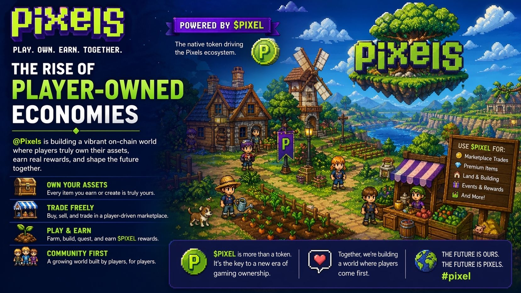 The gaming industry is undergoing a major transformation, and @Pixels is right at the center of this shift. Unlike traditional games where players spend hours building progress that they never truly own, Pixels introduces a decentralized ecosystem powered by blockchain, where every asset has real value and ownership belongs to the player.With $PIXEL acting as the backbone of this economy, players can earn, trade, and reinvest within the game world in a way that feels both rewarding and sustainable. Whether it’s farming, building, or participating in the broader in-game marketplace, Pixels creates a dynamic environment where effort directly translates into opportunity.Looking ahead, Pixels is not just a game—it’s a glimpse into the future of digital ownership and interactive economies. For anyone interested in the next wave of blockchain innovation, keeping an eye on $PIXEL could be a smart move.#pixel