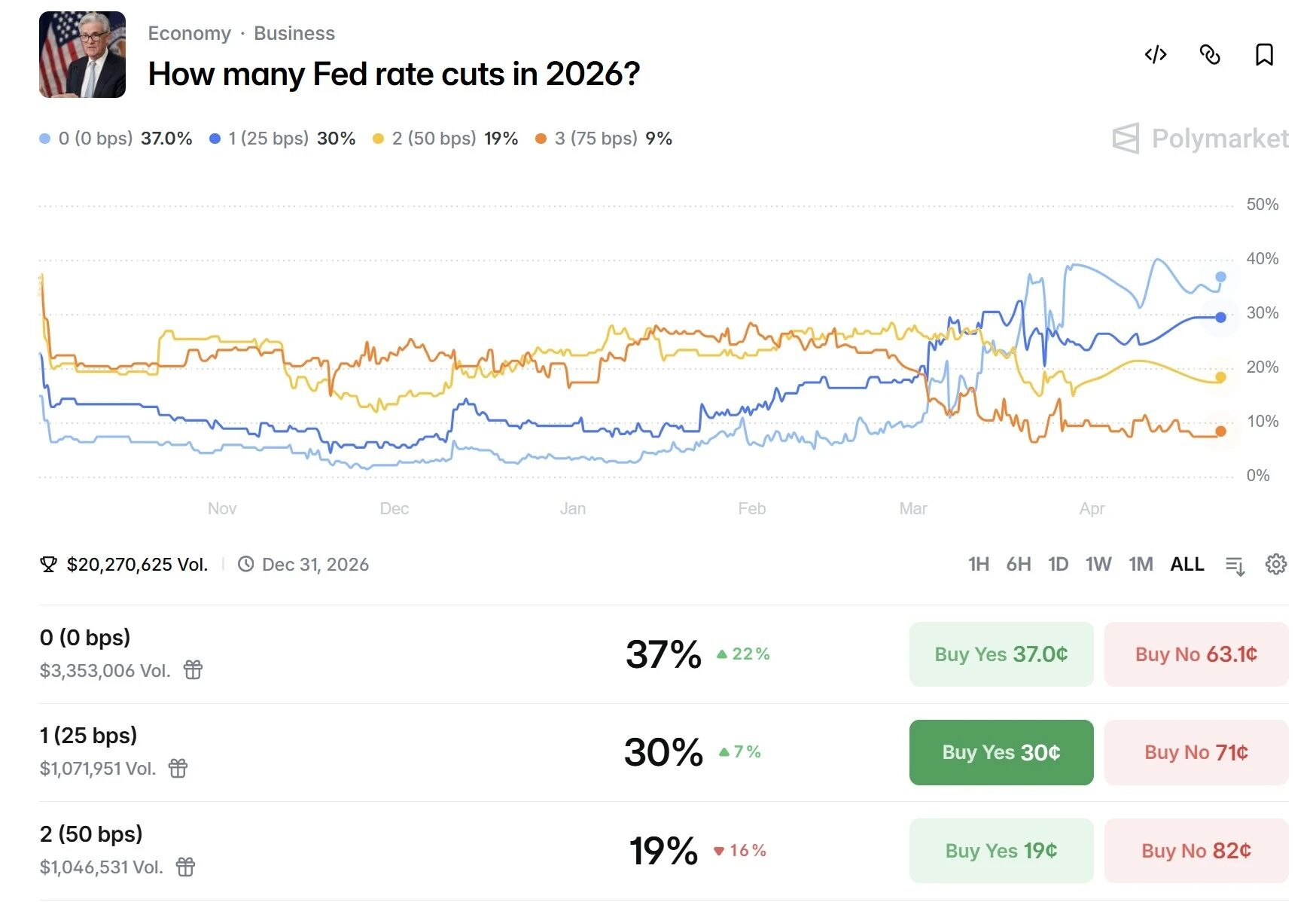 The more crucial macro change lies in the weakening dollar and the return of rate cut expectations. Polymarket data shows that the market's bets on the Fed cutting rates once this year have risen to 30%.