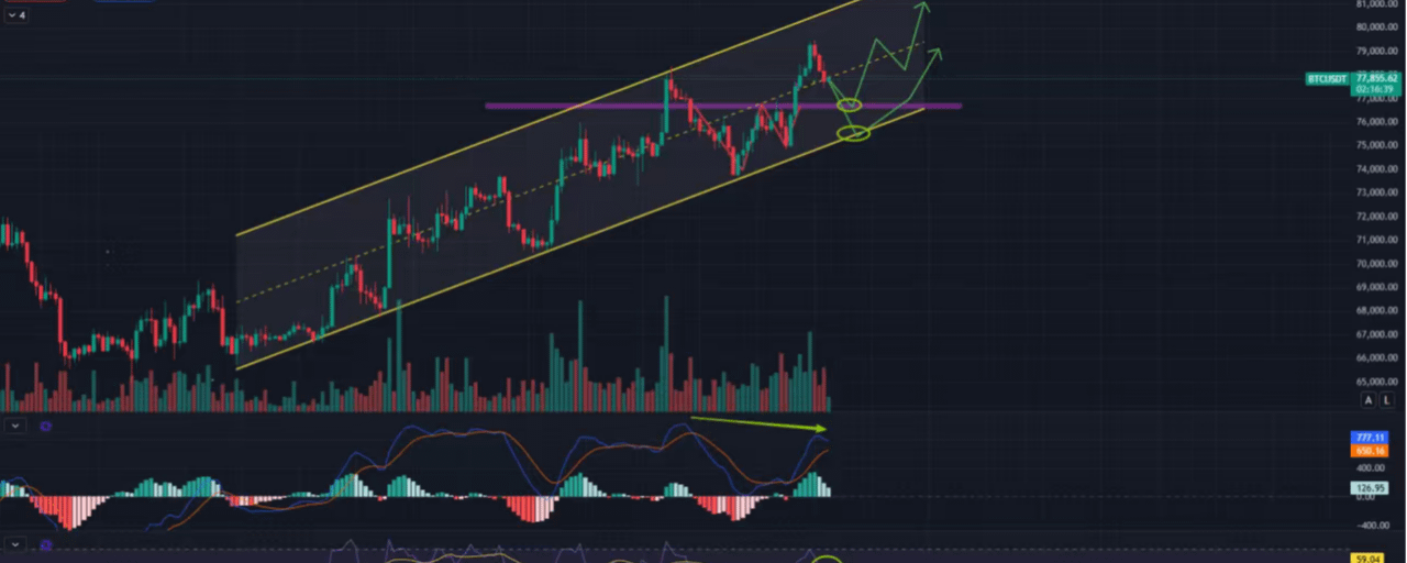 Currently, BTC is trading above the midpoint of an ascending channel, and this week's bullish candlestick is likely to continue. Although there’s resistance around $79,500 from previous highs, as long as we break through and hold, the target range is aiming straight for $82,000-$84,000!