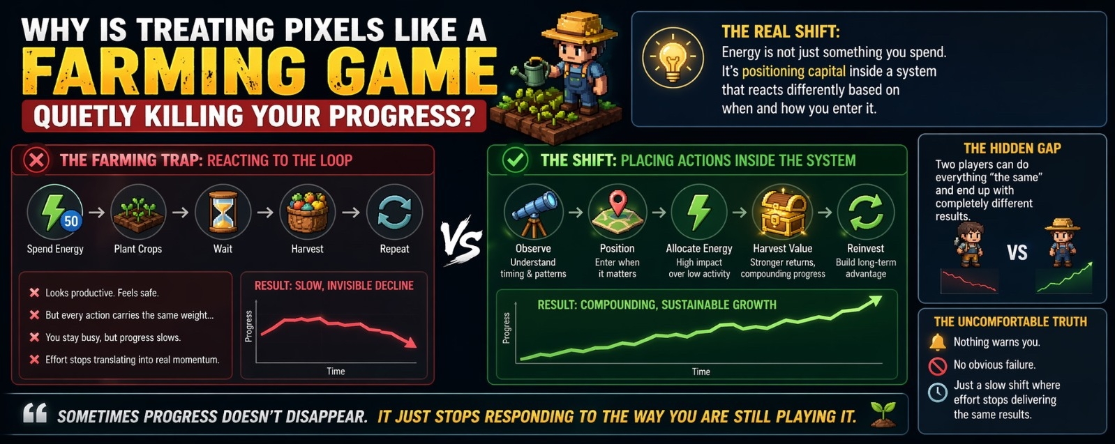 That is when the thought became hard to ignore. Treating Pixels like a farming game might be the quiet reason progress starts fading without players noticing.