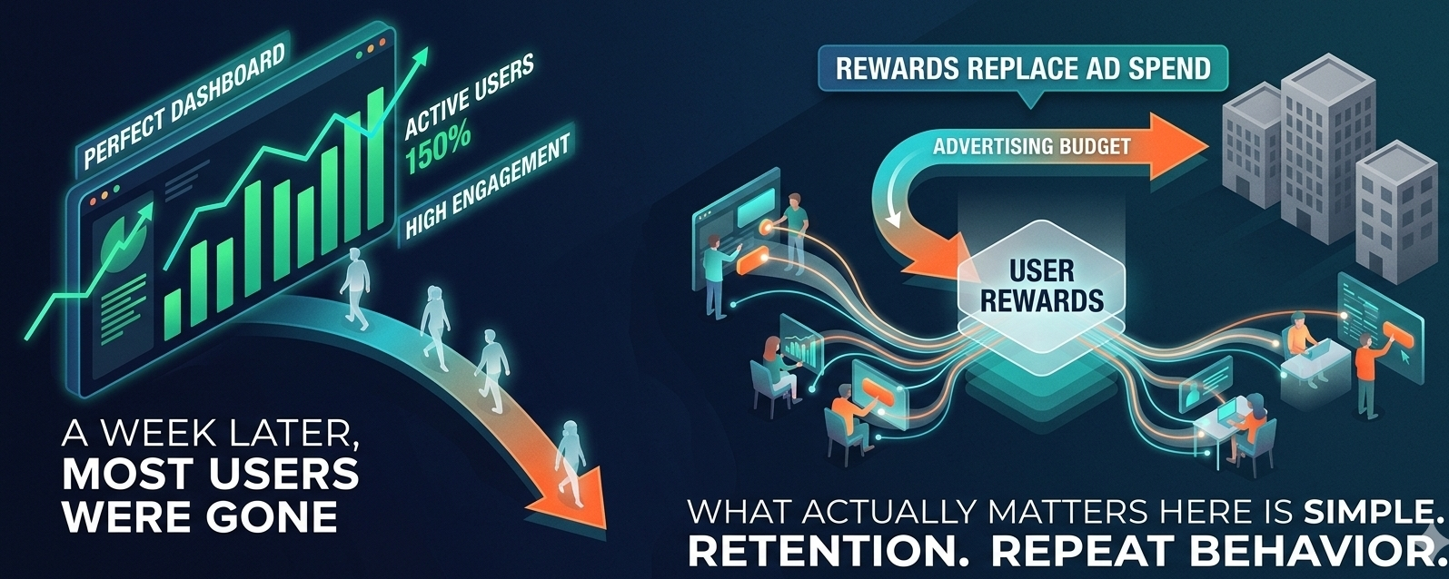Instead of chasing users through ads, the system redirects that same budget back to users. Rewards replace ad spend. It sounds simple, but it changes the direction of value flow.