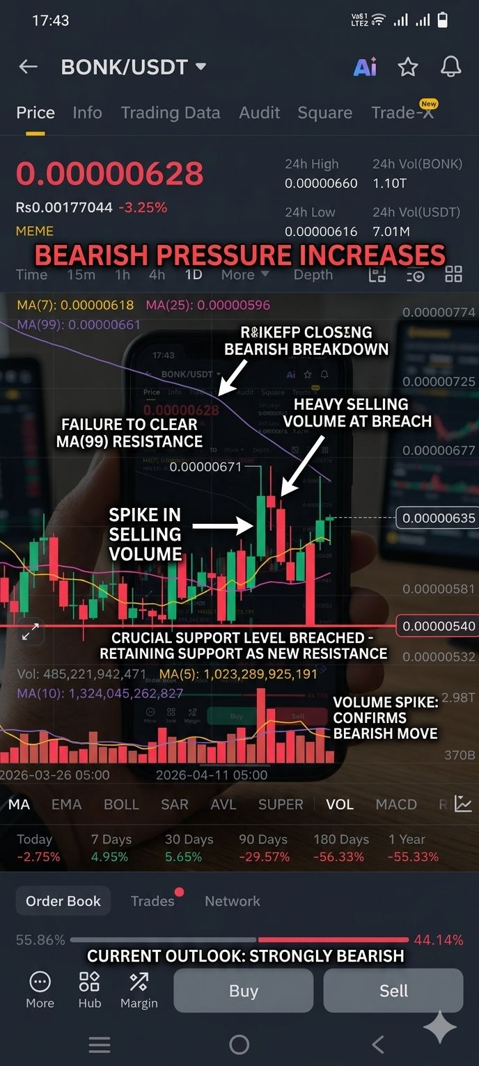The $BONK /$USDT daily (1D) chart is showing some interesting price action. After a period of consolidation, the price is currently hovering around 0.00000635. Here is a detailed breakdown of what to expect next: