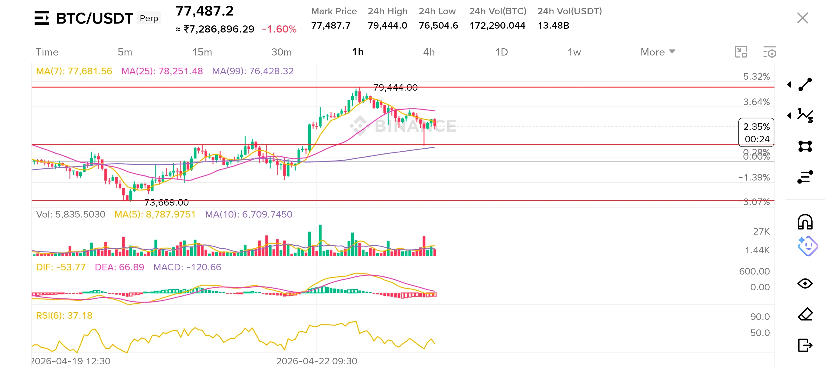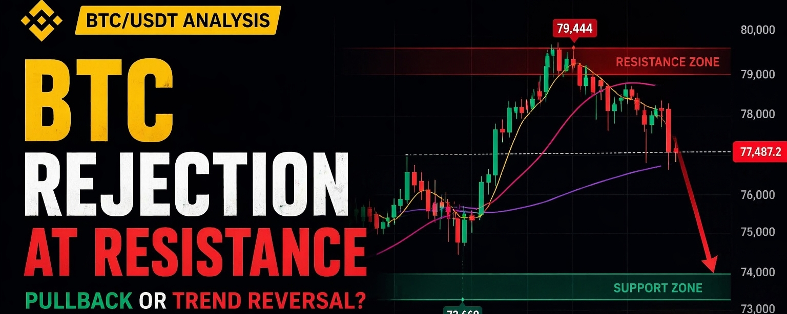 After a strong bullish rally, BTC faced rejection near 79.4K resistance, leading to a noticeable decline and shift in short-term momentum.
