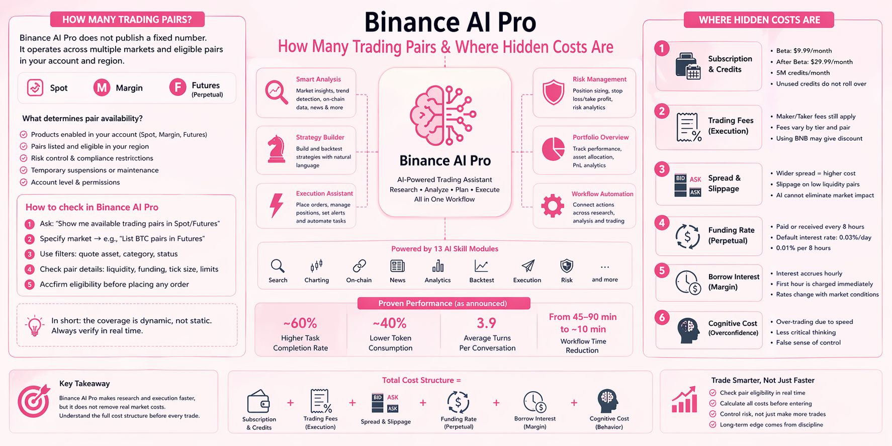 There are evenings when I no longer feel like looking at the price board, yet I still open Binance AI Pro because I want to see where this tool is actually leading me inside the trading structure. The more closely I look, the more I feel the question worth paying for is not where the market is about to go, but how many pairs this tool truly reaches and which costs are being hidden inside its sense of convenience.