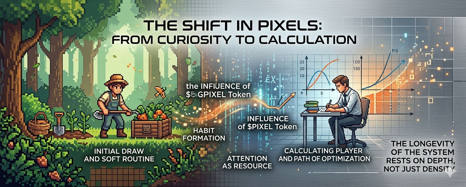 I’m watching how people move through Pixels lately, not in a rush, not with the excitement that usually surrounds new systems, but with a kind of quiet calculation. I’m waiting to see if their behavior settles into something consistent or if it keeps shifting with every small update. I’ve seen enough of these environments to know that what looks alive at first can slowly turn mechanical over time. So I’m looking closely, not at the surface features, but at the way attention flows through the world and how long it actually stays there.