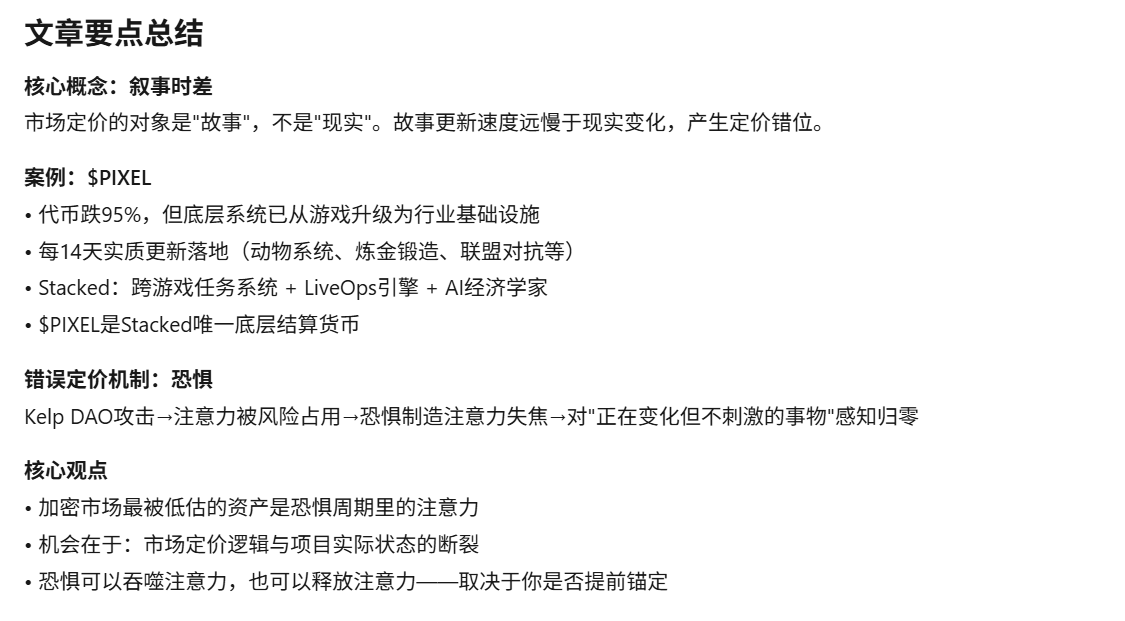 Pixels and Stacked aren’t about making a certain price prediction. It’s more of a diagnostic: there’s a gap between market pricing logic and the actual state of the project, execution is ongoing, but the narrative hasn’t kept up, with fear standing in the way. That’s all I can see.