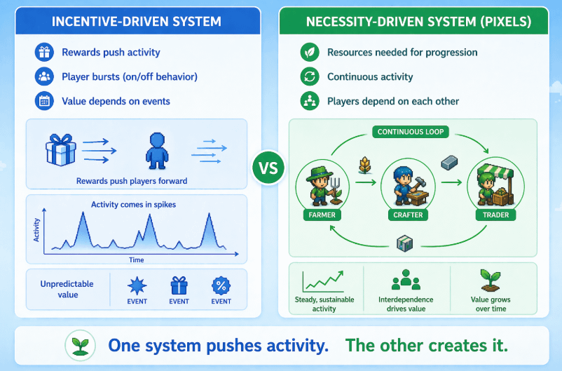 Looking at it now, I don’t see Pixels as a system that simply reacts to individual actions in isolation. It feels more like a system that remembers, adapts, and evolves through the collective behavior of its players.
