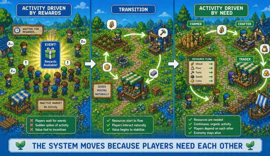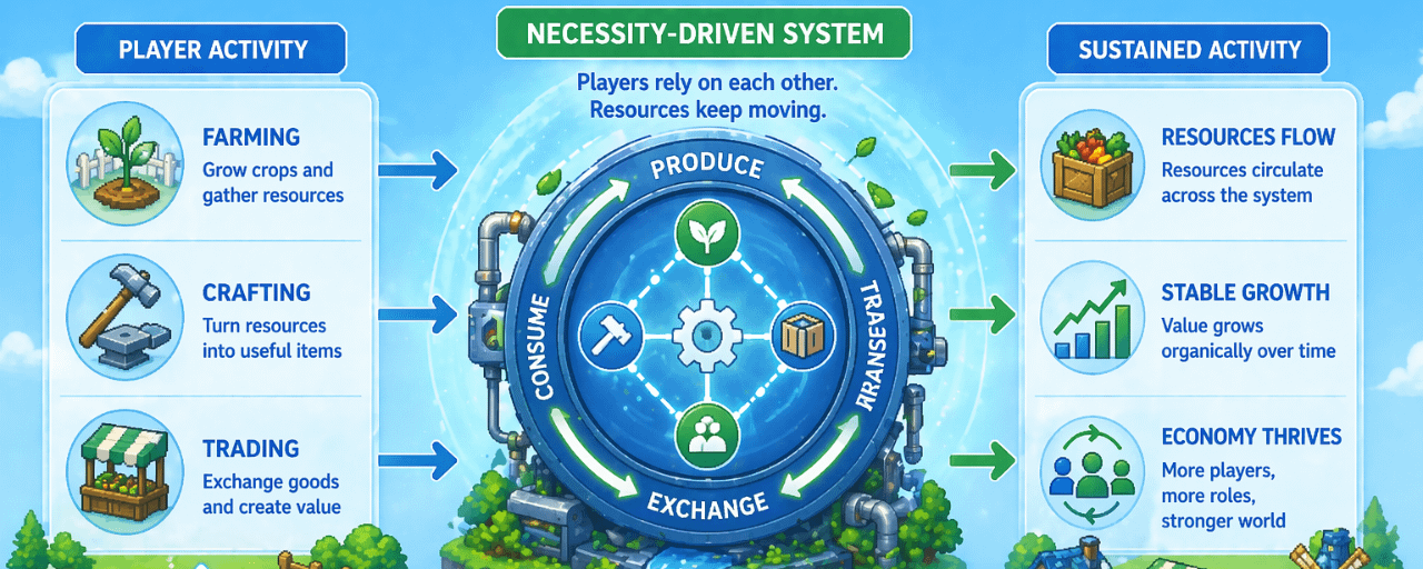 Every action contributes to something larger, even if the effect isn’t immediately visible. Over time, those contributions shape the environment itself, influencing what becomes valuable, what becomes scarce, and how players choose to engage.