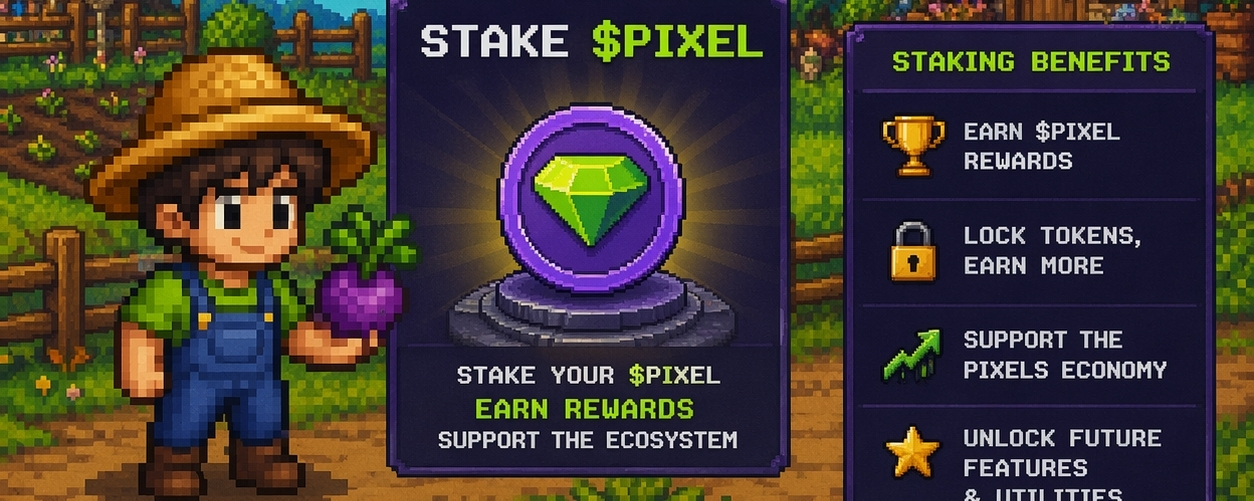 The core idea behind the Pixels project is strongly tied to the $PIXEL token, which serves as the engine for all economic operations within the ecosystem. Users not only collect or use the token but can also benefit from the Staking system, which gives them the opportunity to support the network while earning yields by locking up their assets.