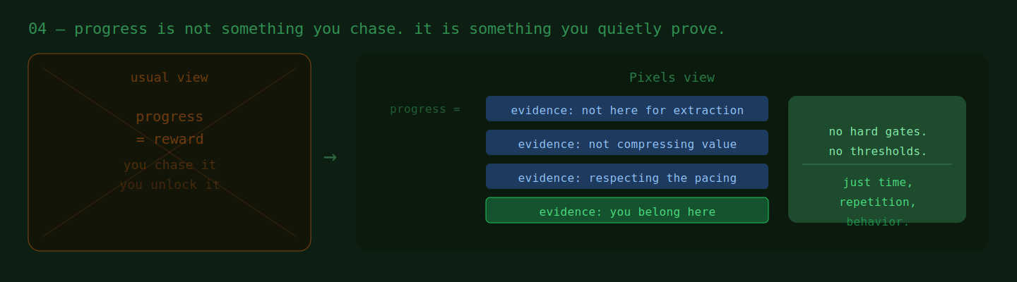 which means progress in Pixels isn’t just about giving you more access.