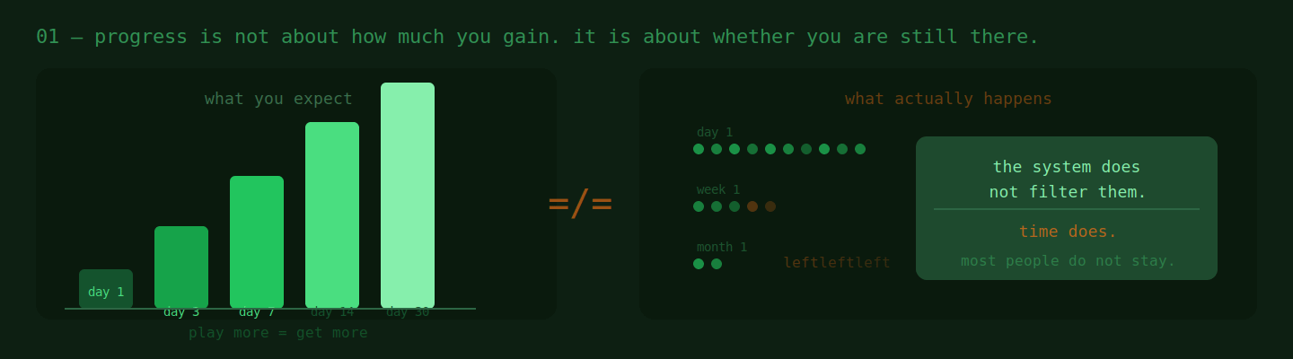 but the longer you stay, the more it feels like progress isn’t really about how much you gain.it’s about whether you’re still there.
