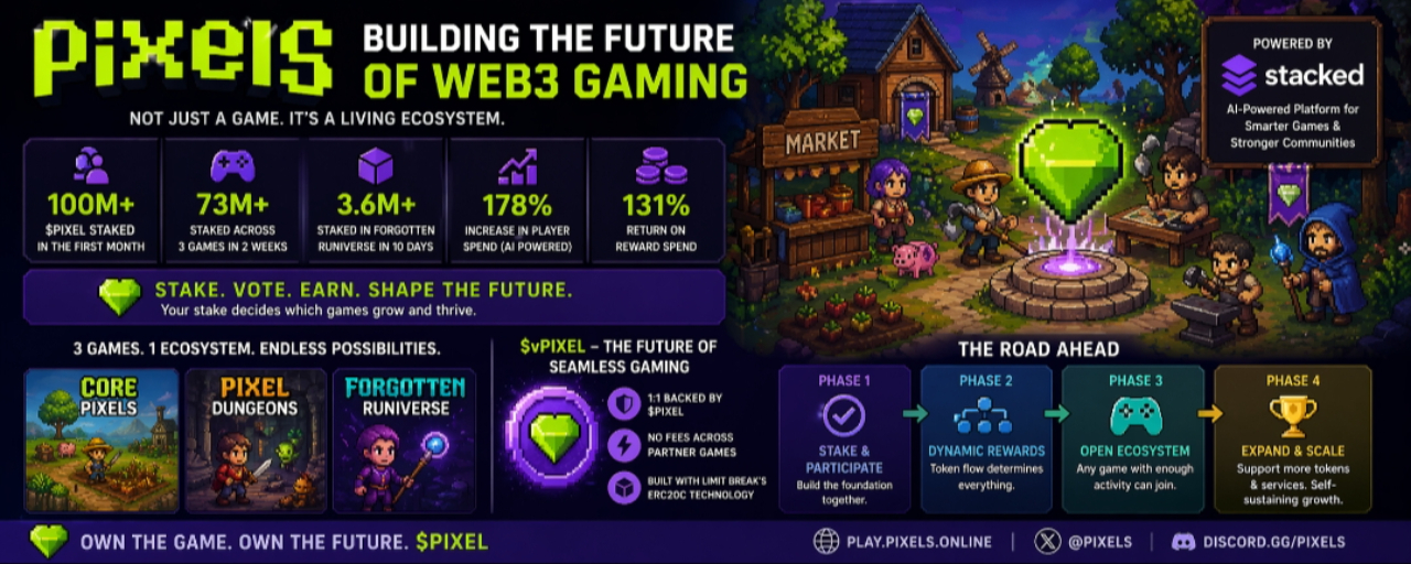 If you have been watching the web3 gaming space and wondering which projects are going to still be relevant two or three years from now, Pixels is one of the very short list of names that deserves serious attention. The staking numbers are real. The ecosystem growth is real. The technology is being built with long term sustainability in mind not just short term hype.