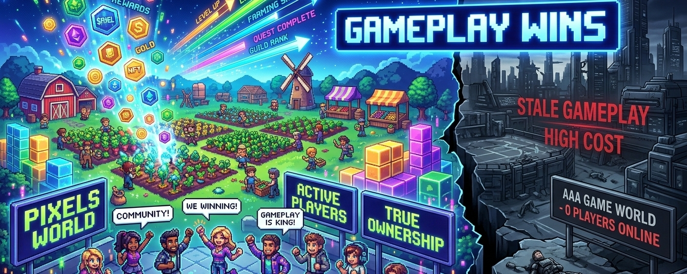 Why do so many people play Pixels despite its simple graphics? I think the answer is quite clear: gameplay is more important than graphics. Visuals can certainly attract attention initially, but what keeps players going is usually the gameplay experience. Many games with fancy graphics fail to retain users because the gameplay is empty. Conversely, games with a simple appearance can be popular if the gameplay system keeps players engaged.