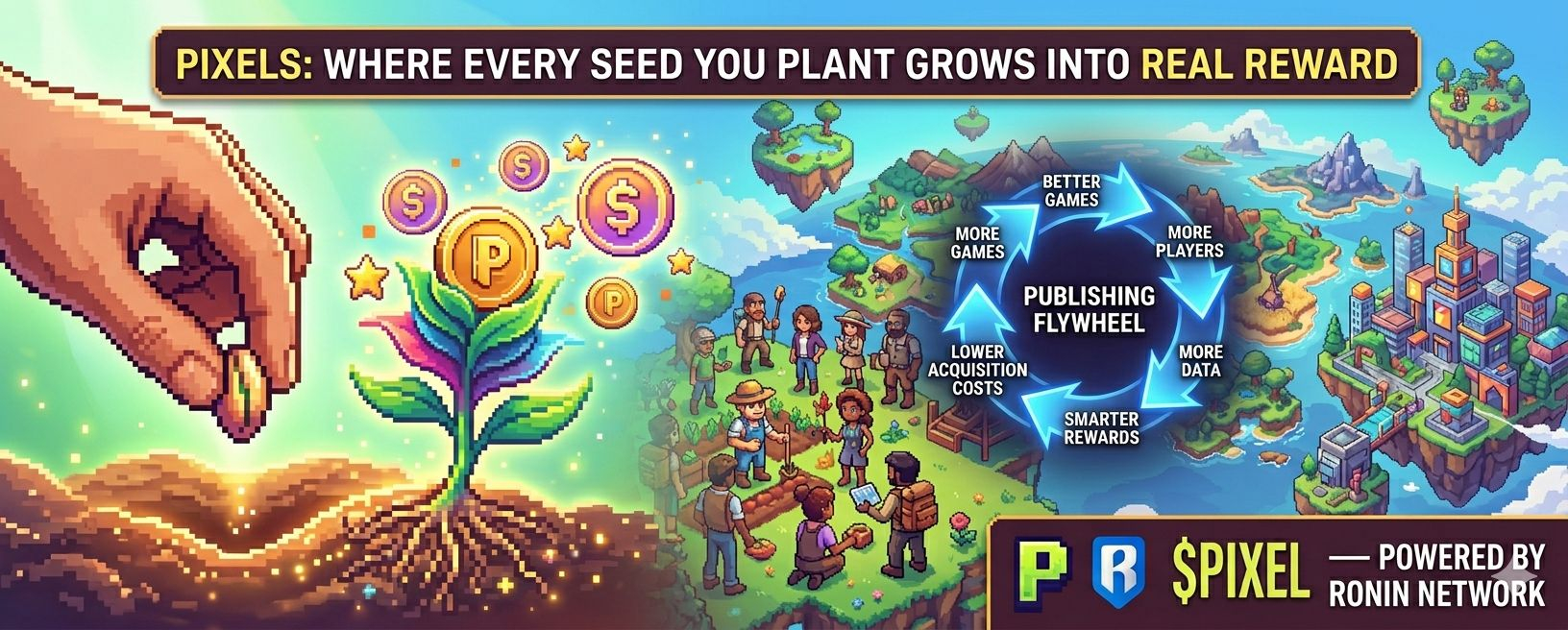 What really hooked me and I mean really hooked me was understanding how Pixels plans to grow. They've designed something called a Publishing Flywheel. Here's how it works in plain language: better games attract more players. More players generate more data. More data makes the reward system smarter. A smarter reward system lowers the cost of bringing new players in. Lower costs attract even more great games to the platform...