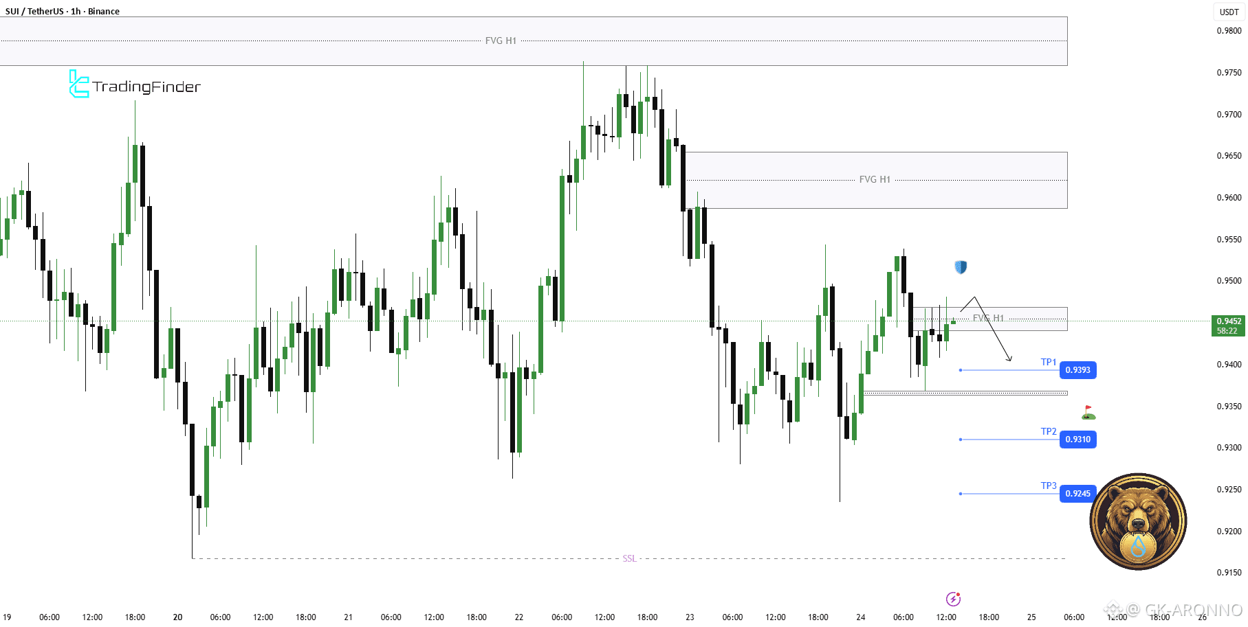 After SUIUSDT made a corrective bullish move, price taps into an H1 FVG in premium and shows clear rejection. This suggests smart money is distributing positions and preparing for a continuation to the downside.