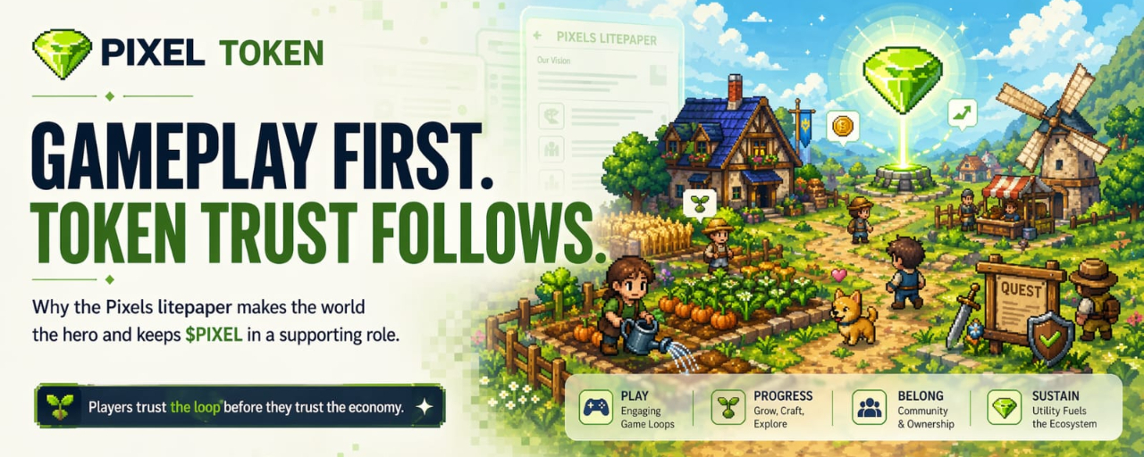 When I first looked at this, I assumed the lighter token emphasis was a weakness. In crypto, we are trained to treat loud token language as confidence. What changed my view was noticing that the litepaper does not sound shy about $PIXEL . It sounds protective of the game. My thesis is simple: the document makes gameplay the hero because economic trust in a live system usually arrives after players trust the loop, not before.
