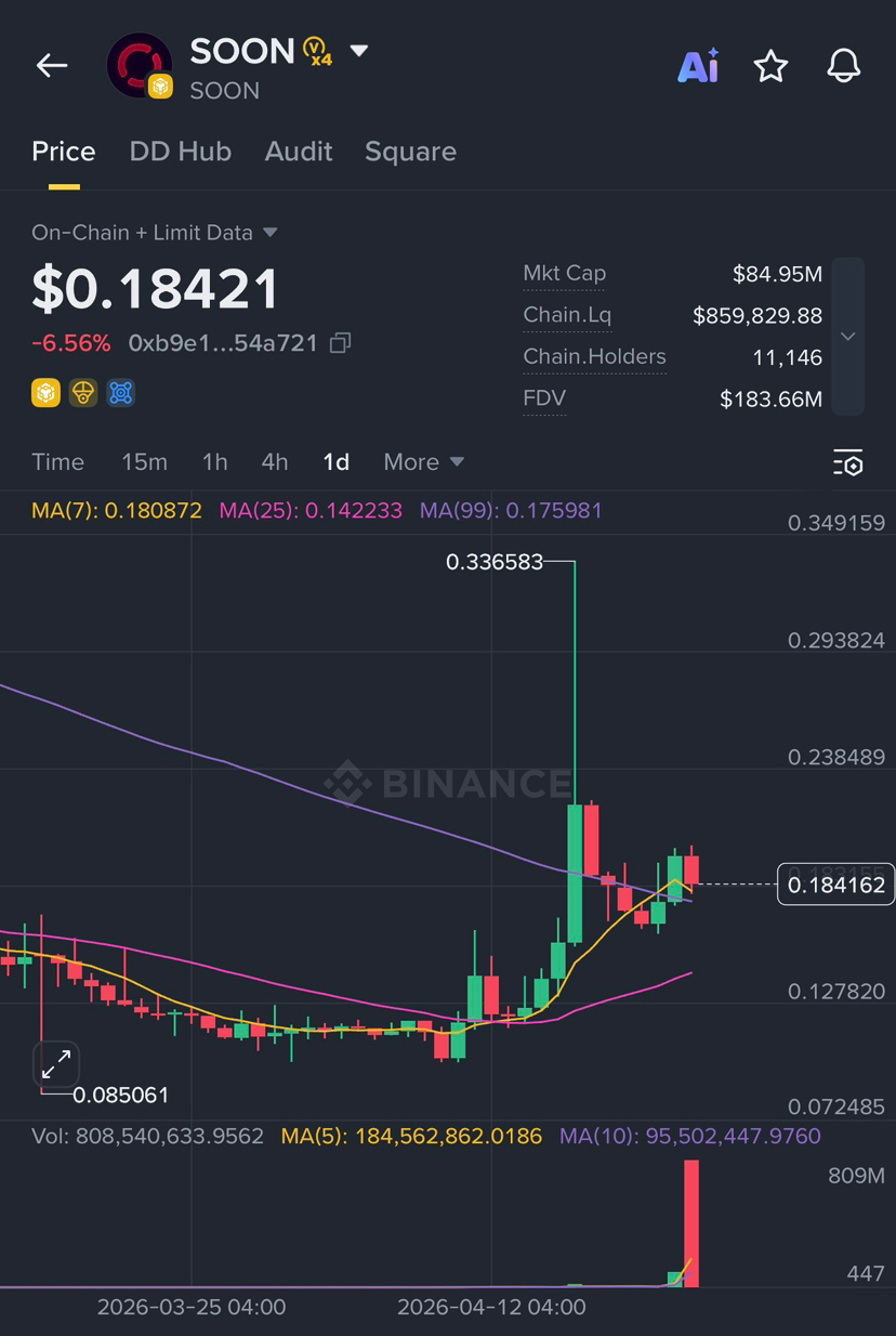 From a market perspective, SOON’s fundamentals also add weight to its recent performance. With a market capitalization of շուրջ $85 million and growing on-chain activity, investor interest appears to be rising steadily. The spike in trading volume during the rally suggests strong participation, which often precedes sustained price action if momentum continues. However, traders should remain cautious, as volatility remains high following such a rapid increase. The key levels to watch include immediate support around the $0.17–$0.18 zone and resistance near the $0.25–$0.30 range. If the token manages to hold its current support and attract further buying interest, it could attempt another breakout toward previous highs. On the other hand, a breakdown below support may lead to a deeper correction. As always, disciplined risk management and close monitoring of market signals are essential in navigating this evolving trend.