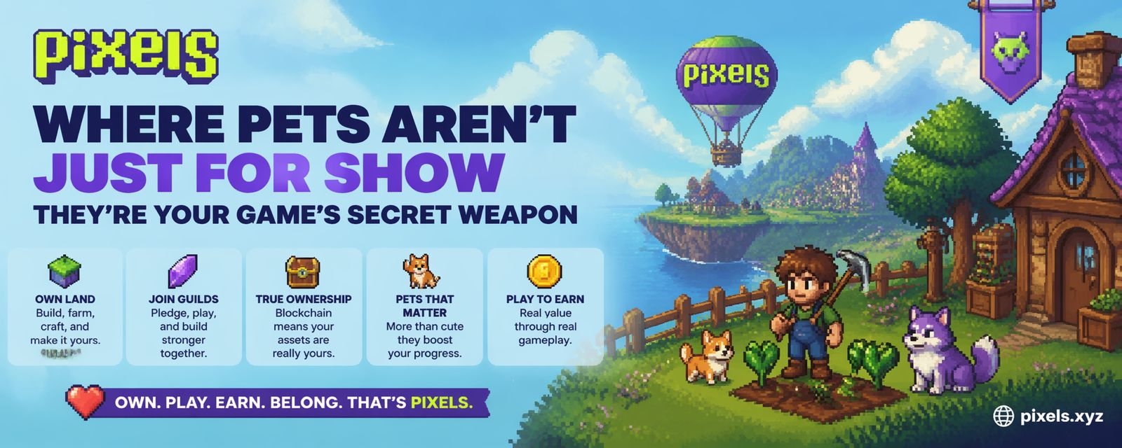 So what makes Pixels different It is not just about owning assets it is about using them. Your land is not decoration your pets are not just cute they are part of how you play.