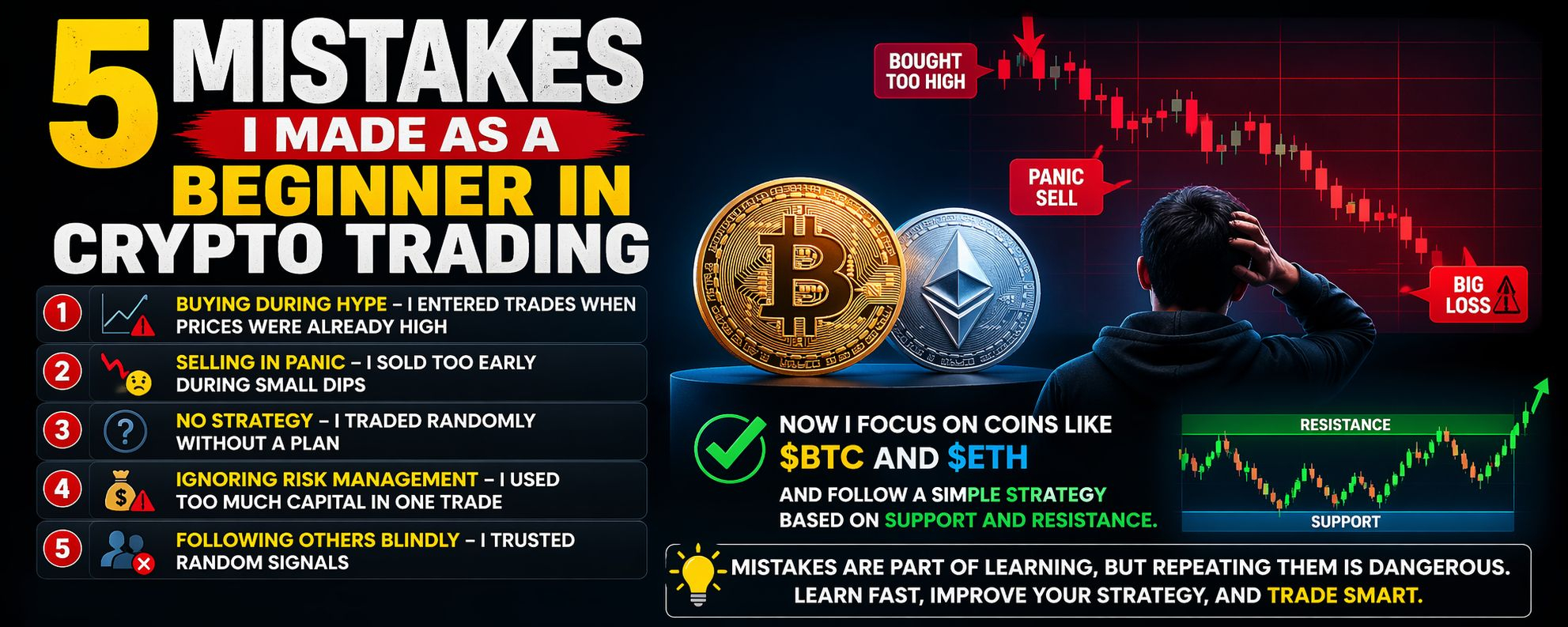 When I first started crypto trading, I thought making money would be easy. But I quickly realized that mistakes cost real money. Here are the biggest mistakes I made so you can avoid them.
