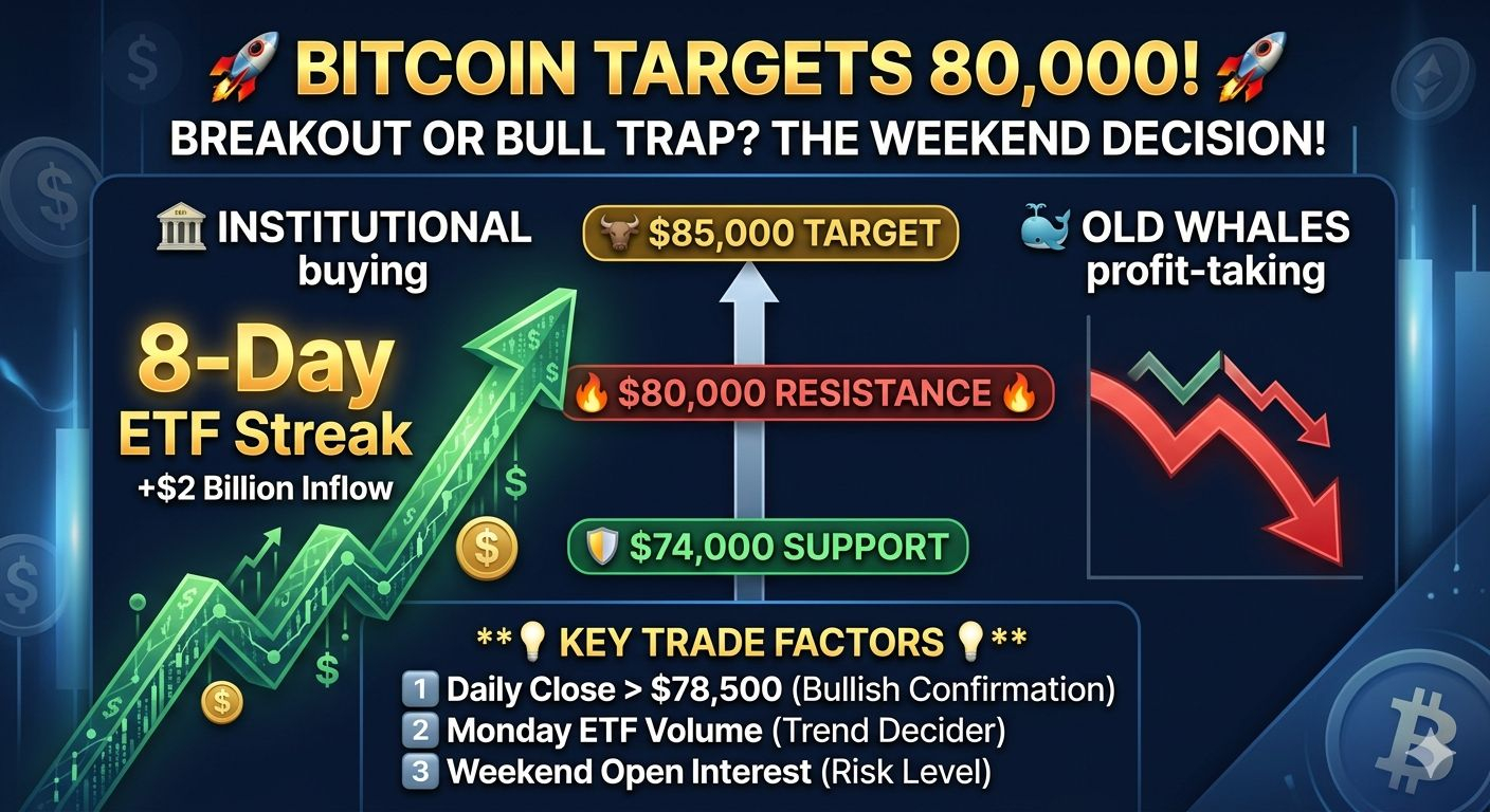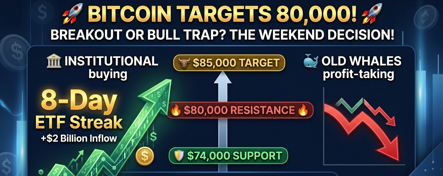 Bitcoin is officially fighting the $80,000 psychological barrier. After an insane 8-day winning streak of ETF inflows, the market is on fire! 🔥