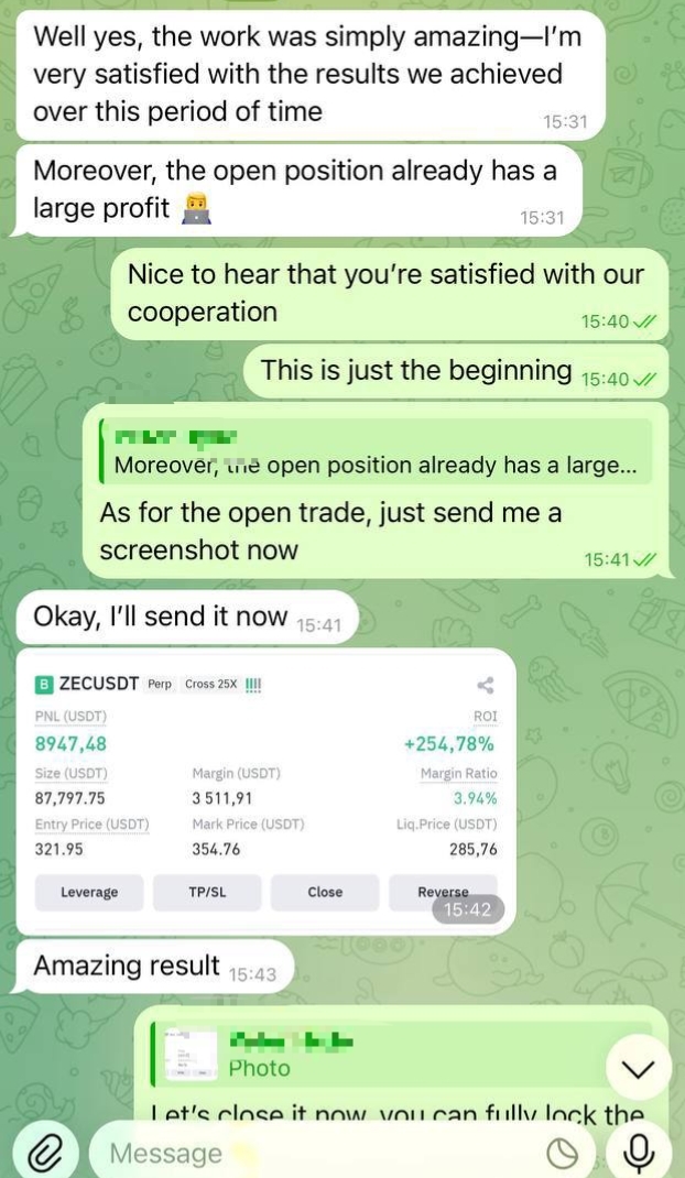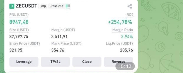 The ZECUSDT position developed steadily after entry and continued respecting the expected structure throughout the move. Price behavior remained clean, allowing the position to grow without unnecessary intervention.