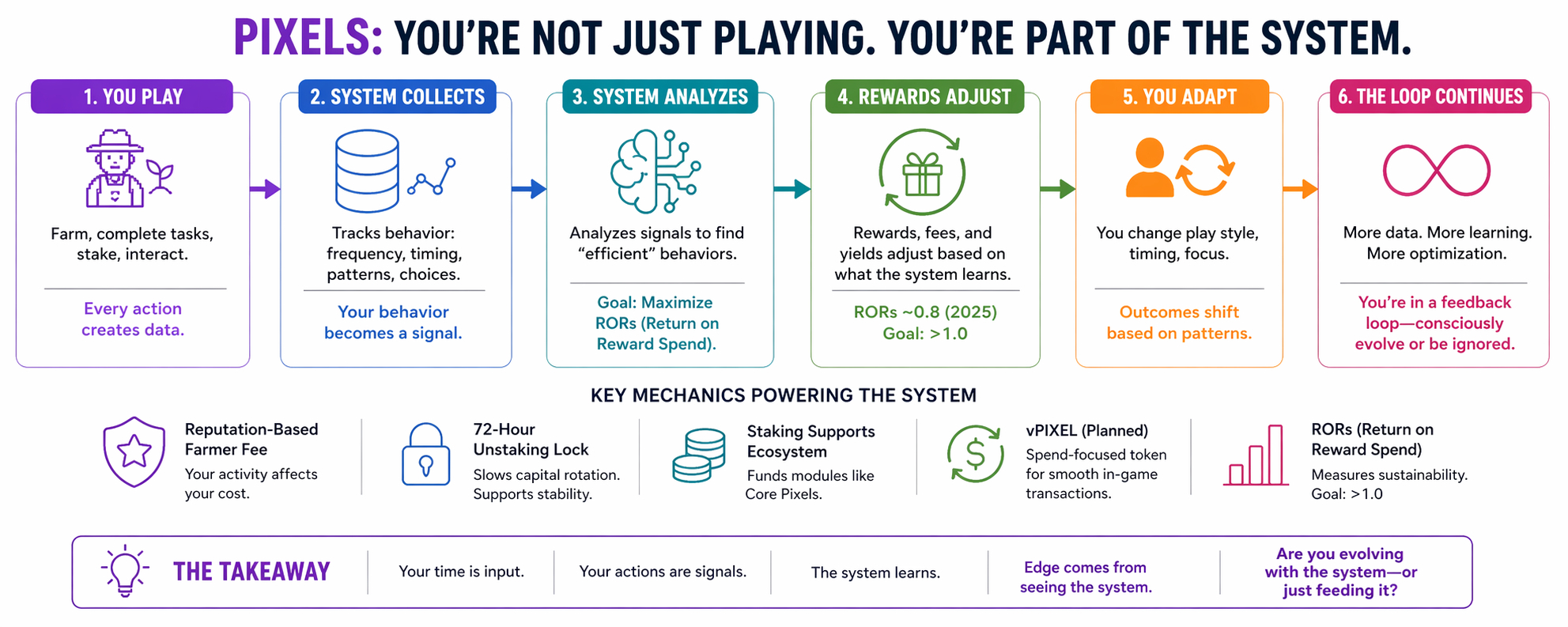 This is why Pixels is trending again in 2026. Not just because of token mechanics or staking yields, but because it represents a shift. Web3 games are no longer just about ownership or earning. They are becoming adaptive systems. Systems that learn. Systems that adjust reward flows in real time based on collective behavior.