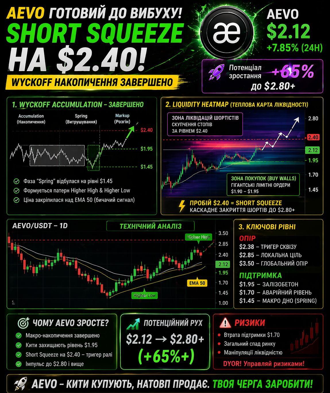 The AEVO chart has completed a Wyckoff Accumulation macro accumulation. The "Spring" phase (shaking off weak hands) occurred at $1.45. The price is now forming a Higher High & Higher Low pattern, consolidating above the 50-day moving average (EMA 50).