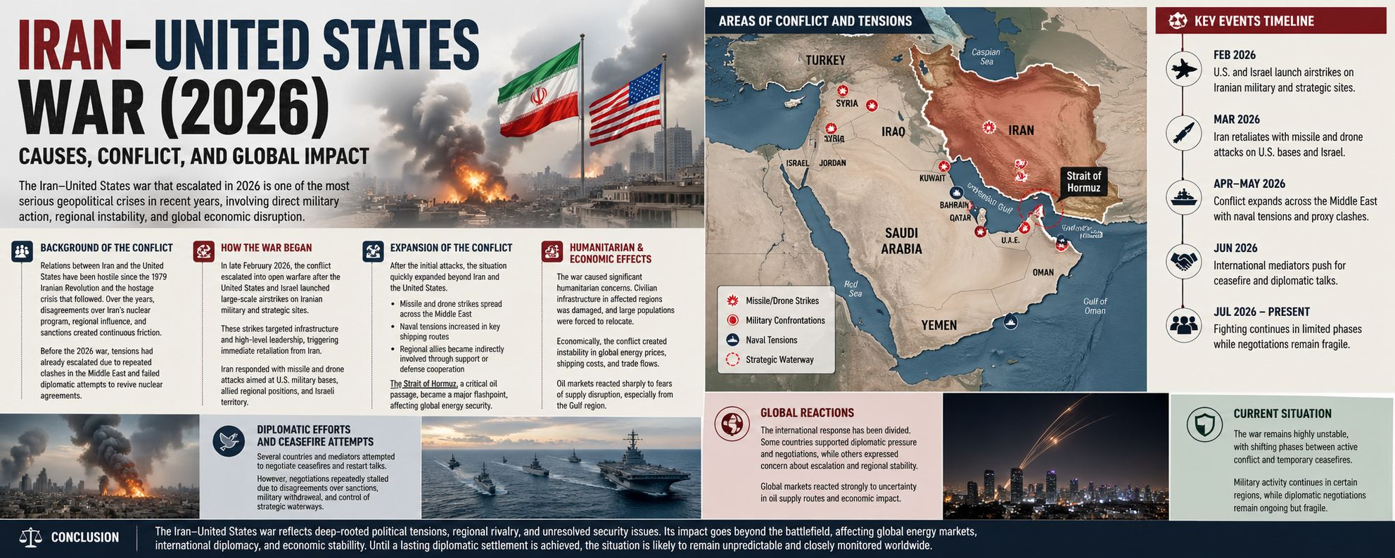The Iran–United States war reflects deep-rooted political tensions, regional rivalry, and unresolved security issues. Its impact goes beyond the battlefield, affecting global energy markets, international diplomacy, and economic stability.