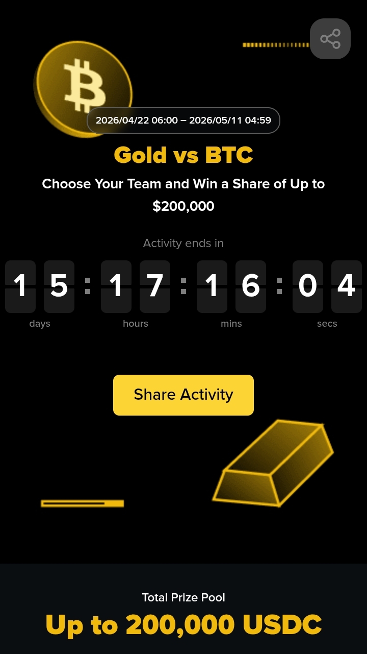 On Team Gold, your volume matters more. Whether you are trading XAUt/USDT or XAUt/USDC, every trade helps push Team Gold toward that 200,000 USDC dynamic prize pool.