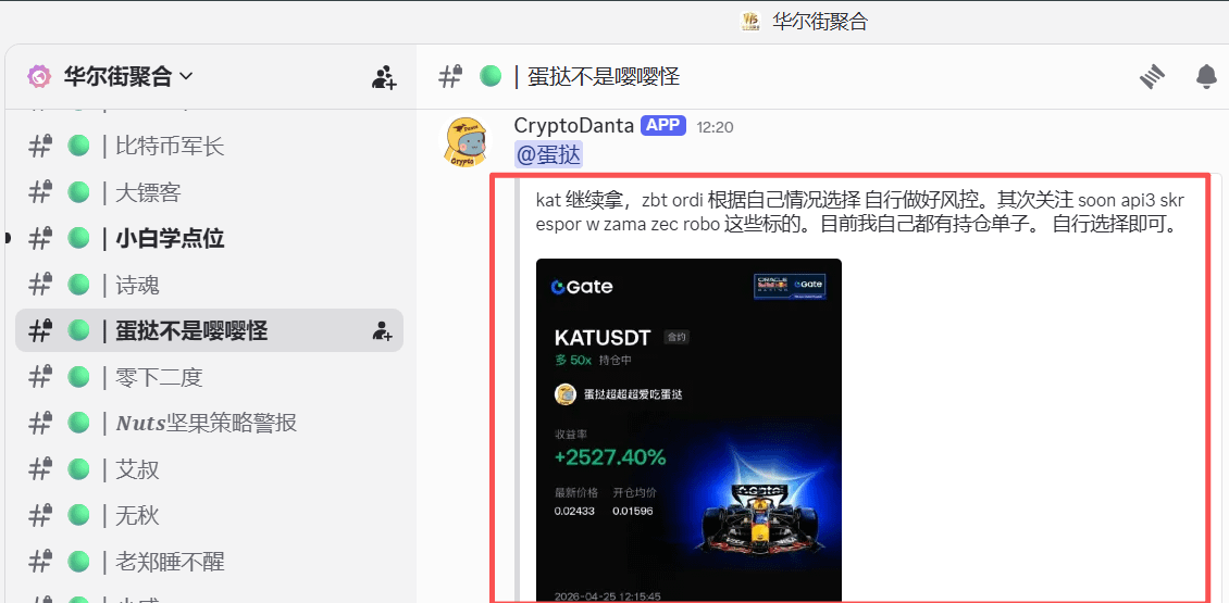 Faced with such high unrealized gains, Danta still suggests to 'HODL' KAT. This indicates that, within the blogger's analytical framework, the bullish logic for KAT is far from over, and the main upward wave might still be ahead.