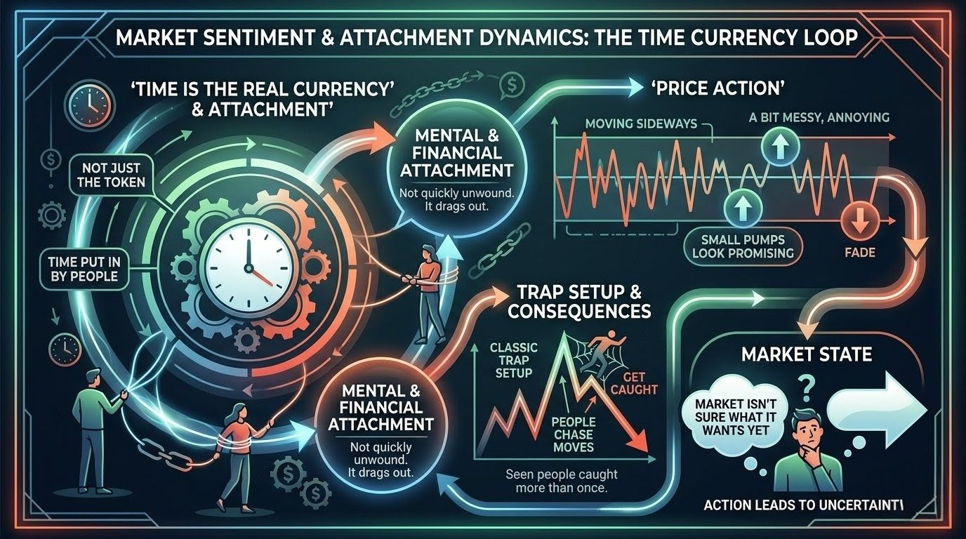 Because time is the real currency here. Not just the token. The more time people put in the more attached they get not just financially but mentally. And that kind of attachment doesn’t unwind quickly. It drags out.