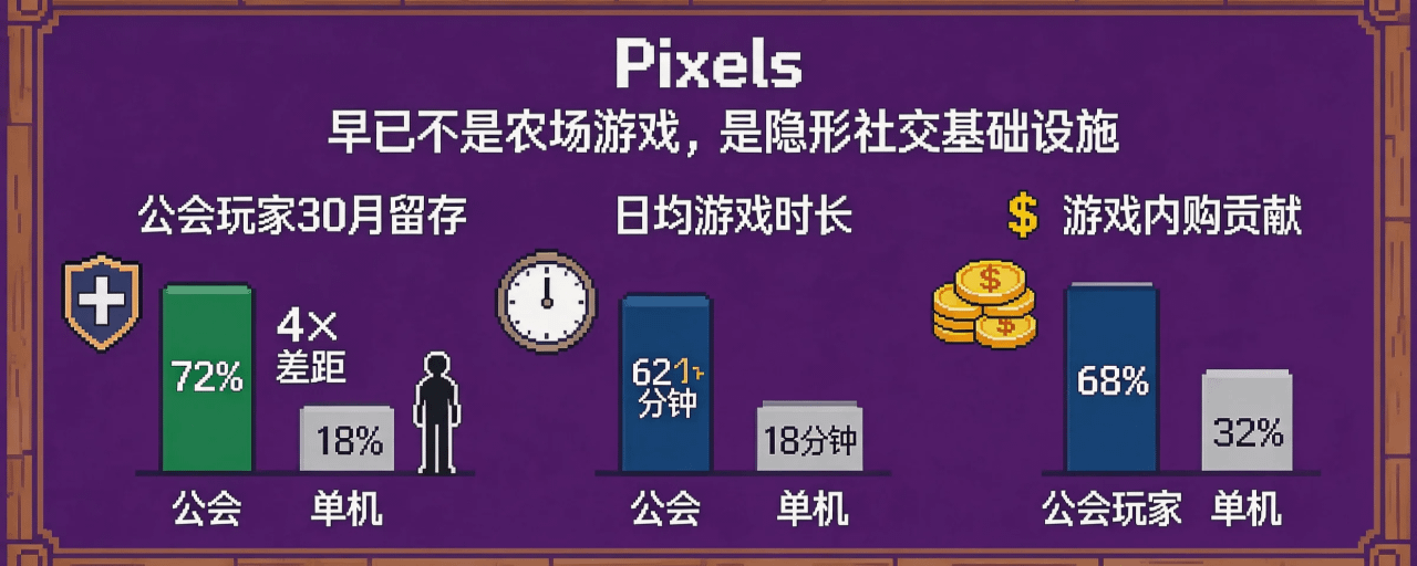 People stay in Pixels not to earn a few more PIXELs, but because they know someone in the guild, have things to do together, and have a place that belongs to them. This is structurally identical to why they don’t uninstall WeChat.