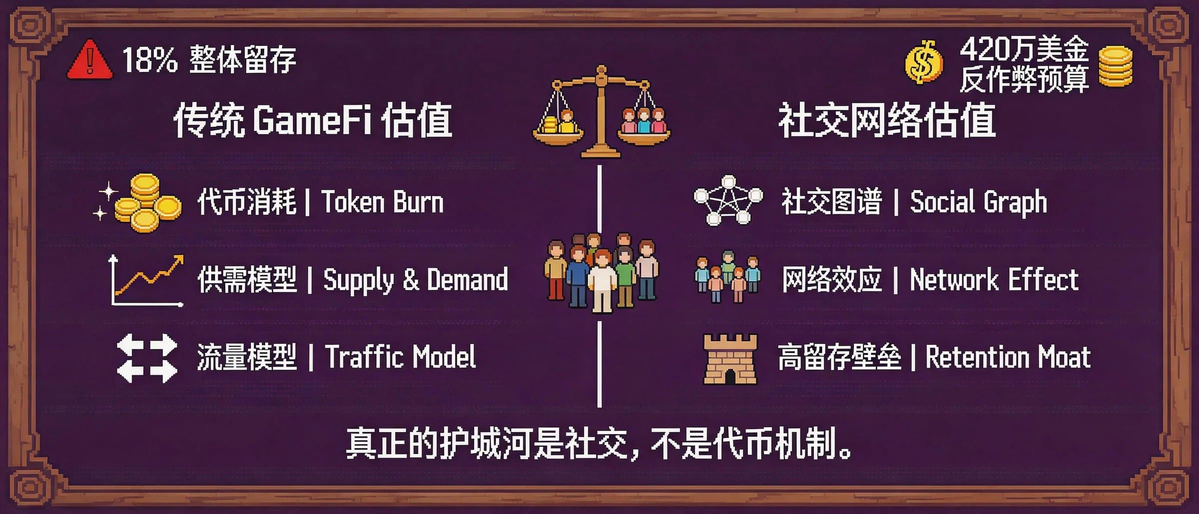 But if Pixels' true moat is the social graph, then the valuation logic for PIXEL should be: