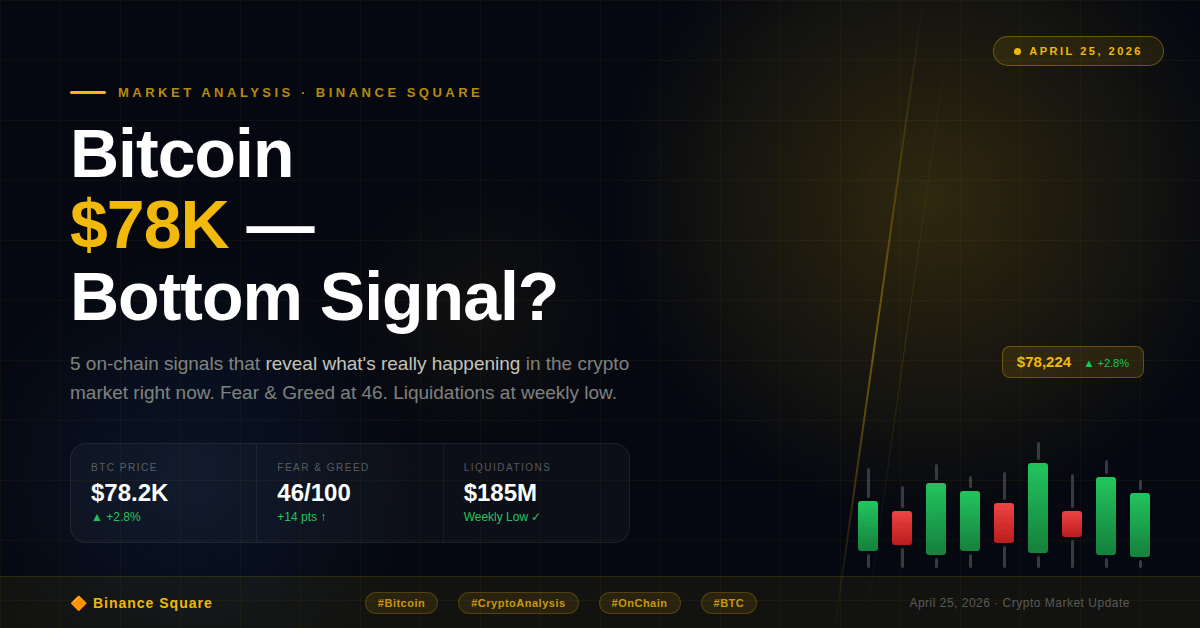 Everyone is scared right now — and that's exactly when the smartest moves are made. In this article, I'm breaking down the most important on-chain signals, live market data, and my personal strategy for navigating this volatile market in April 2026. Read this before making your next trade. 💪━━━━━━━━━━━━━━━━━━━━━━━━━📊 LIVE MARKET SNAPSHOT (April 25, 2026)━━━━━━━━━━━━━━━━━━━━━━━━━• BTC Price: $78,224 (▲ +2.8%)